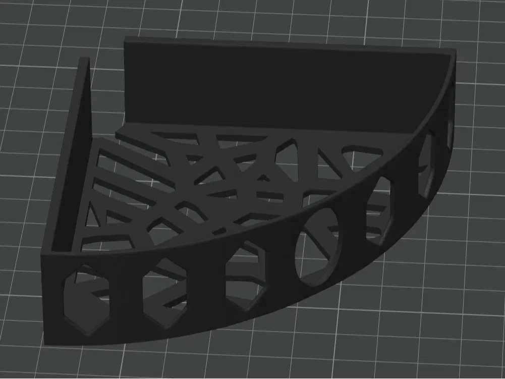 Mẫu kệ góc (Corner shelf) gọn đẹp, chắc chắn, giúp tận dụng tối đa các góc tường. Phù hợp phòng tắm, bếp hay xưởng để đựng mỹ phẩm, gia vị, đồ trang trí hoặc dụng cụ. Dễ in, có thể scale tuỳ nhu cầu.