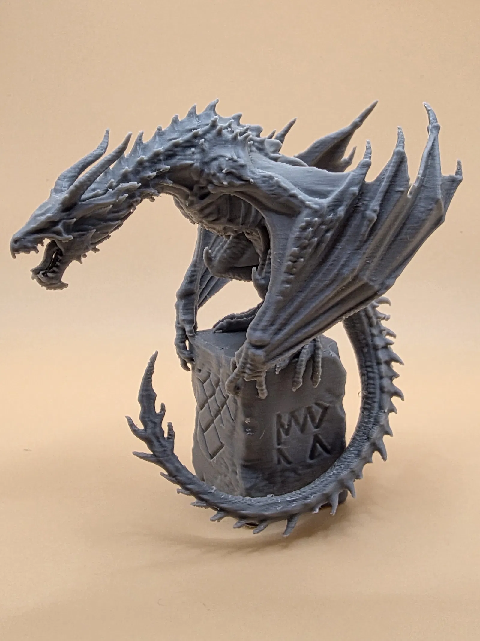 Runový Hadí Drak là mini fantasy với thân rồng cuộn quanh bệ khắc rune, cánh dang rộng và vảy cực chi tiết. Phù hợp làm trang trí, boss tabletop hay điểm nhấn diorama; in đẹp cả ở tỉ lệ nhỏ nhờ texture rõ và form chắc.