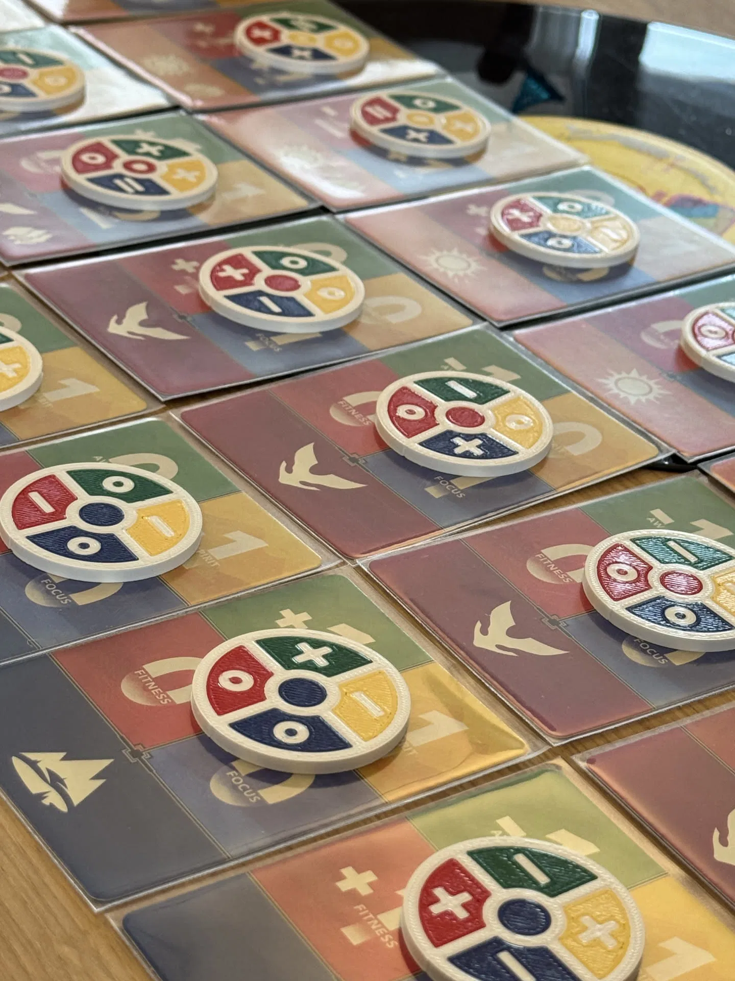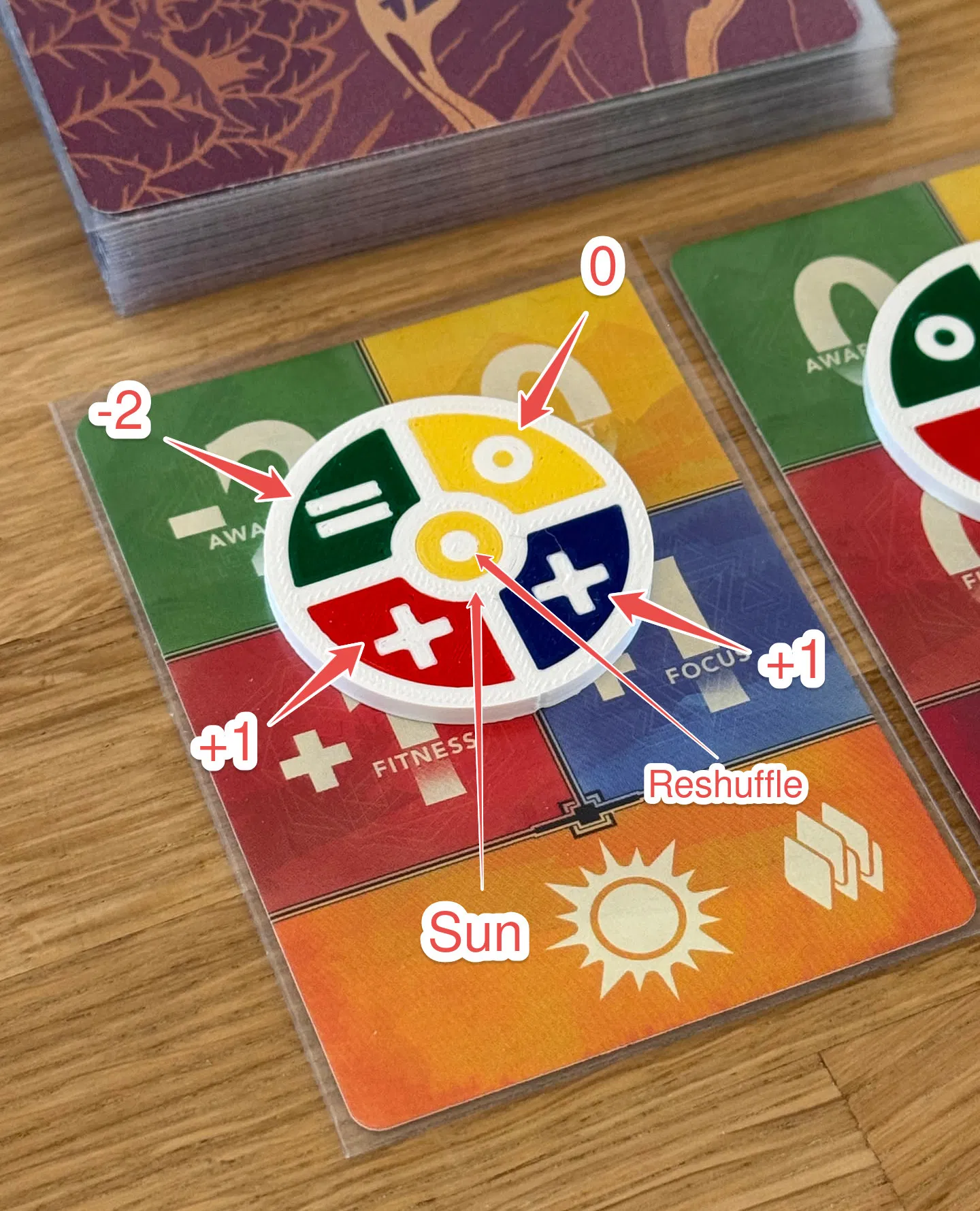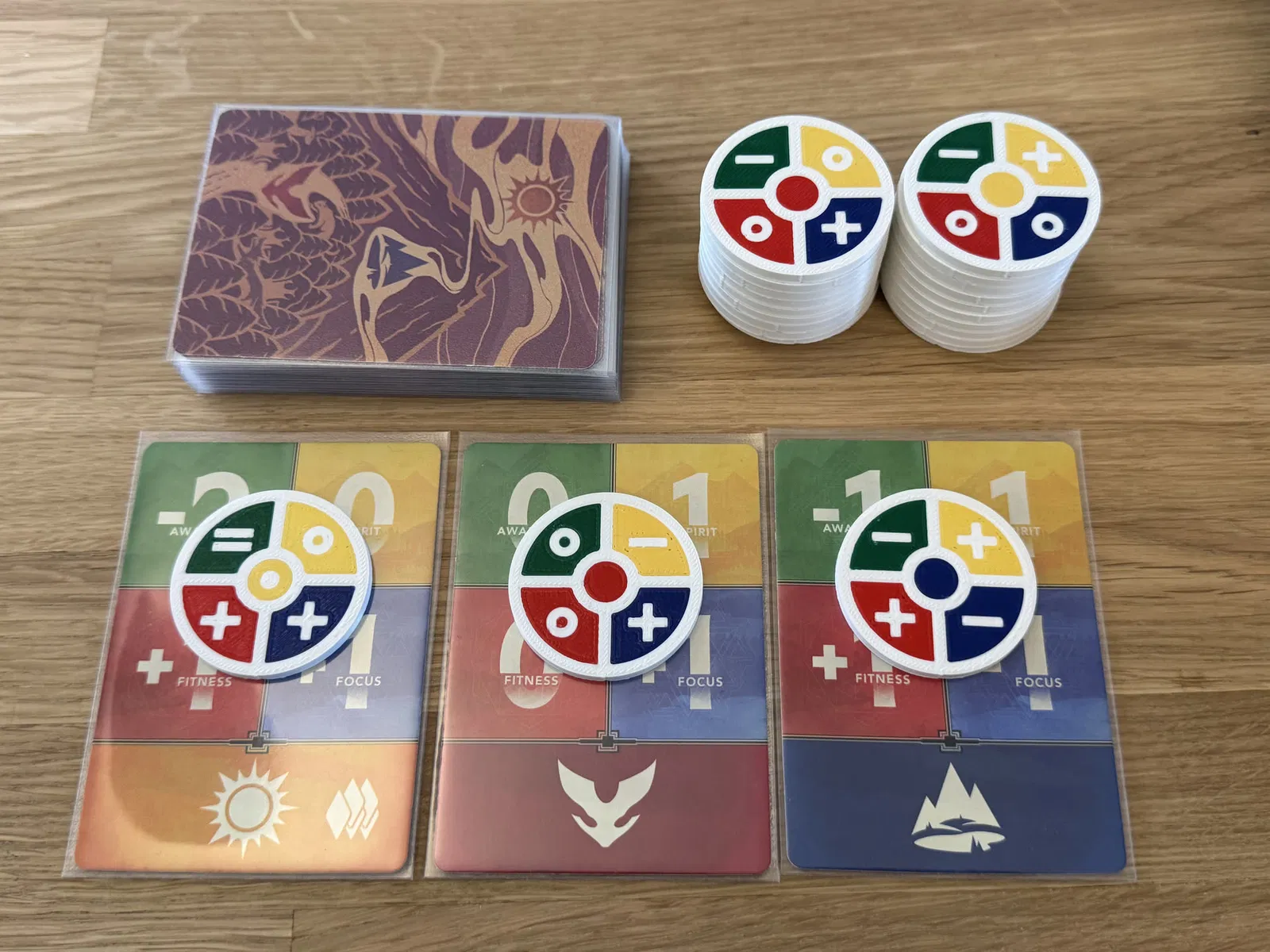 Thiết kế này thay thế từng lá trong 24 challenge cards của Earthborne Rangers bằng một token dạng đĩa tương ứng, truyền tải đúng y như thông tin trên card: