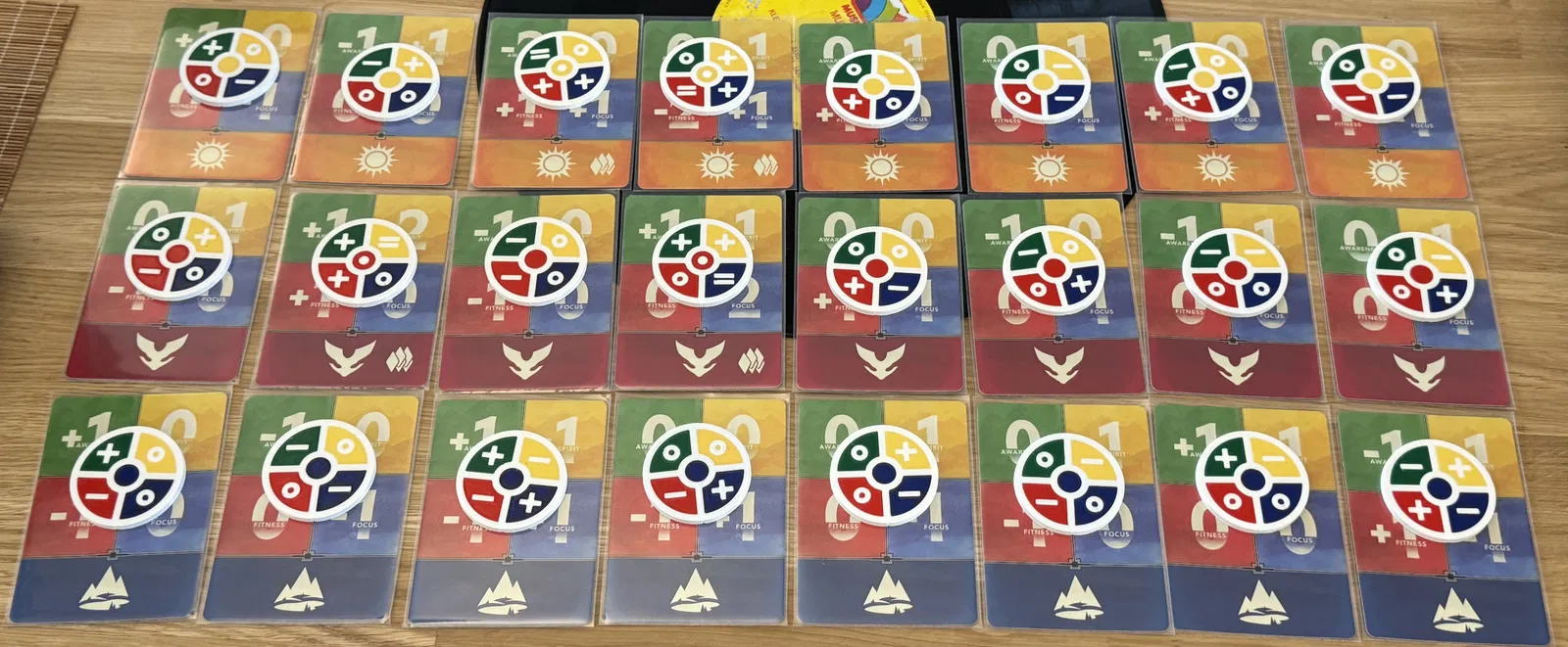 Bộ 24 token dạng đĩa thay cho challenge cards của Earthborne Rangers, thể hiện stat modifiers, activation và biểu tượng reshuffle. Dùng chung với draw bag để có cảm giác như Chaos Bag của Arkham Horror.