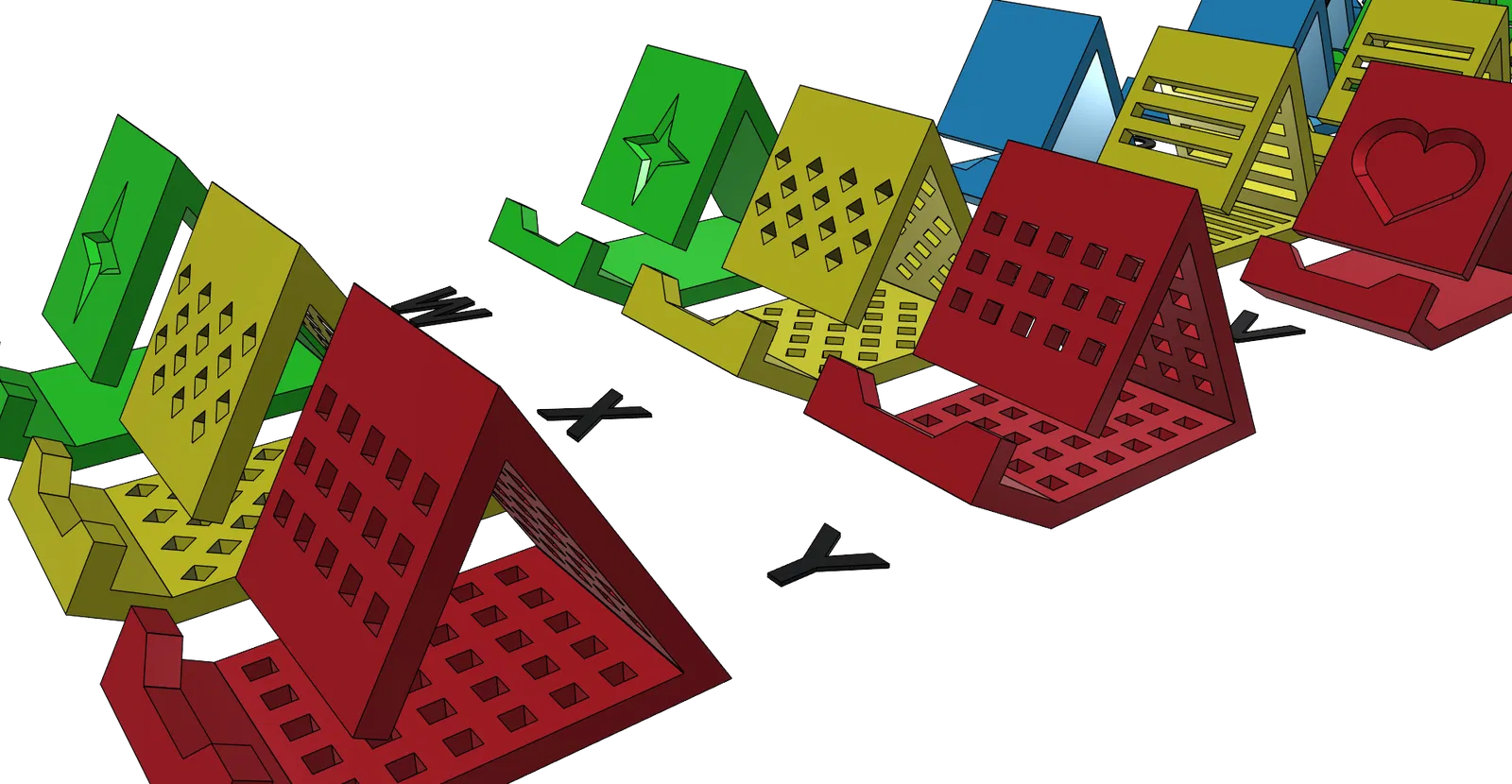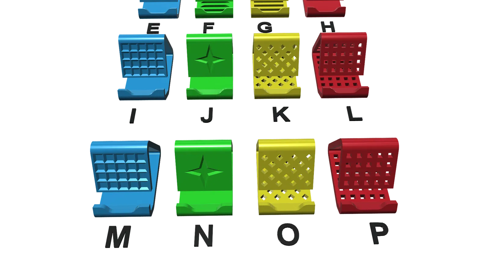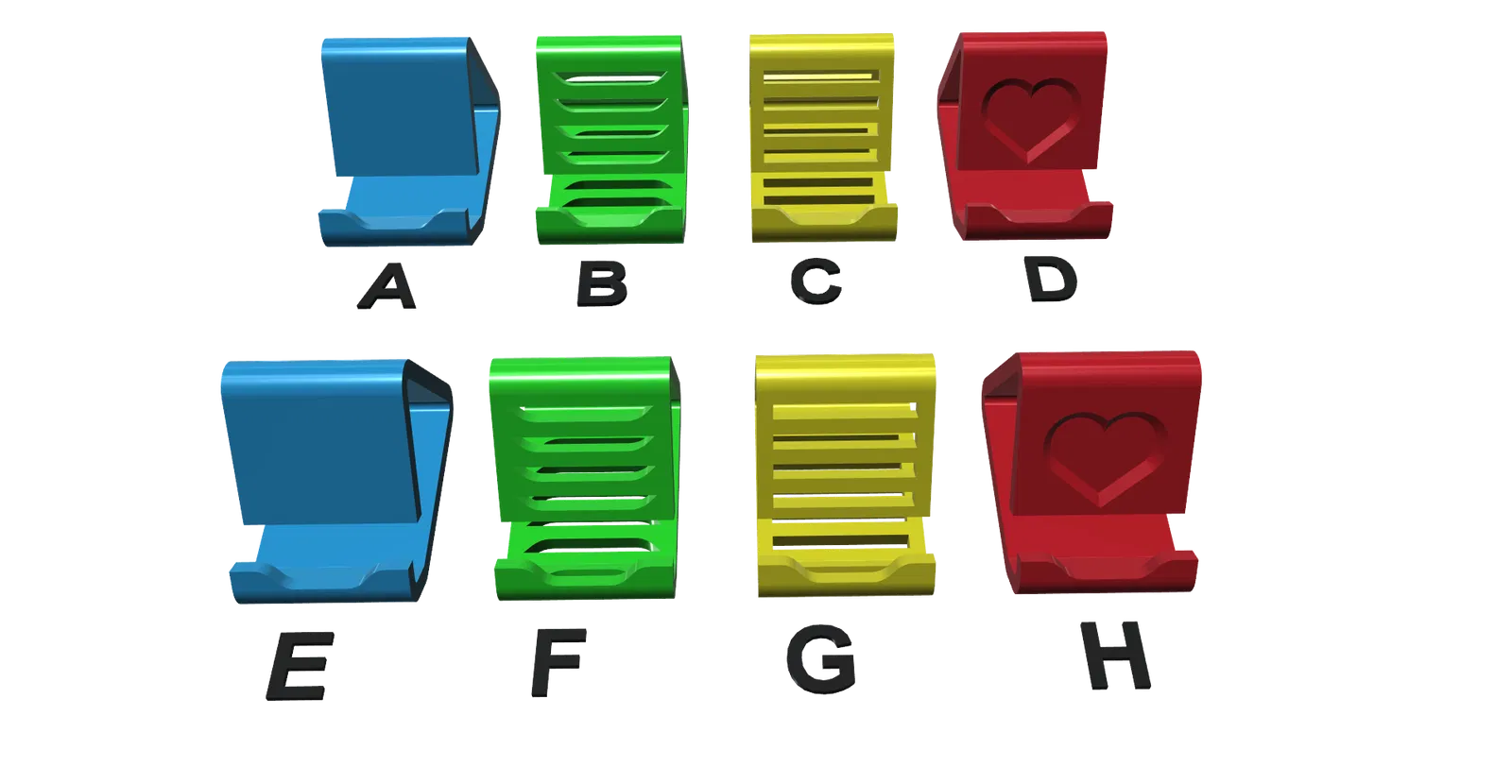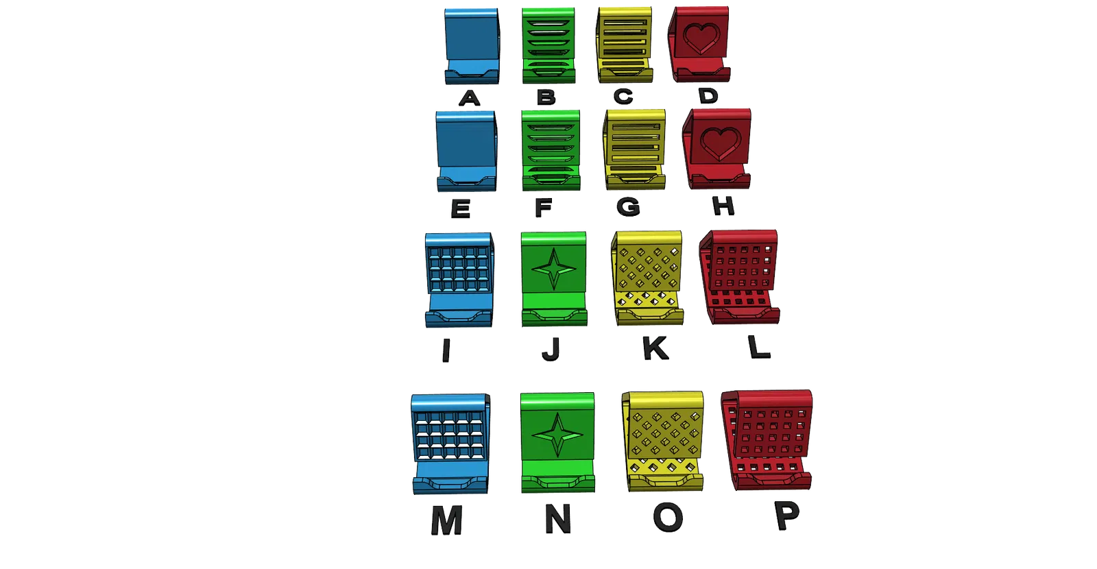 Giá đỡ điện thoại universal gồm 28 phiên bản, in được không cần support. Tiết kiệm filament (~10m với 2 perimeters, 15% infill). Có bản cho máy có ốp (tối đa 21mm) và không ốp (tối đa 9.8mm), rất ổn định.