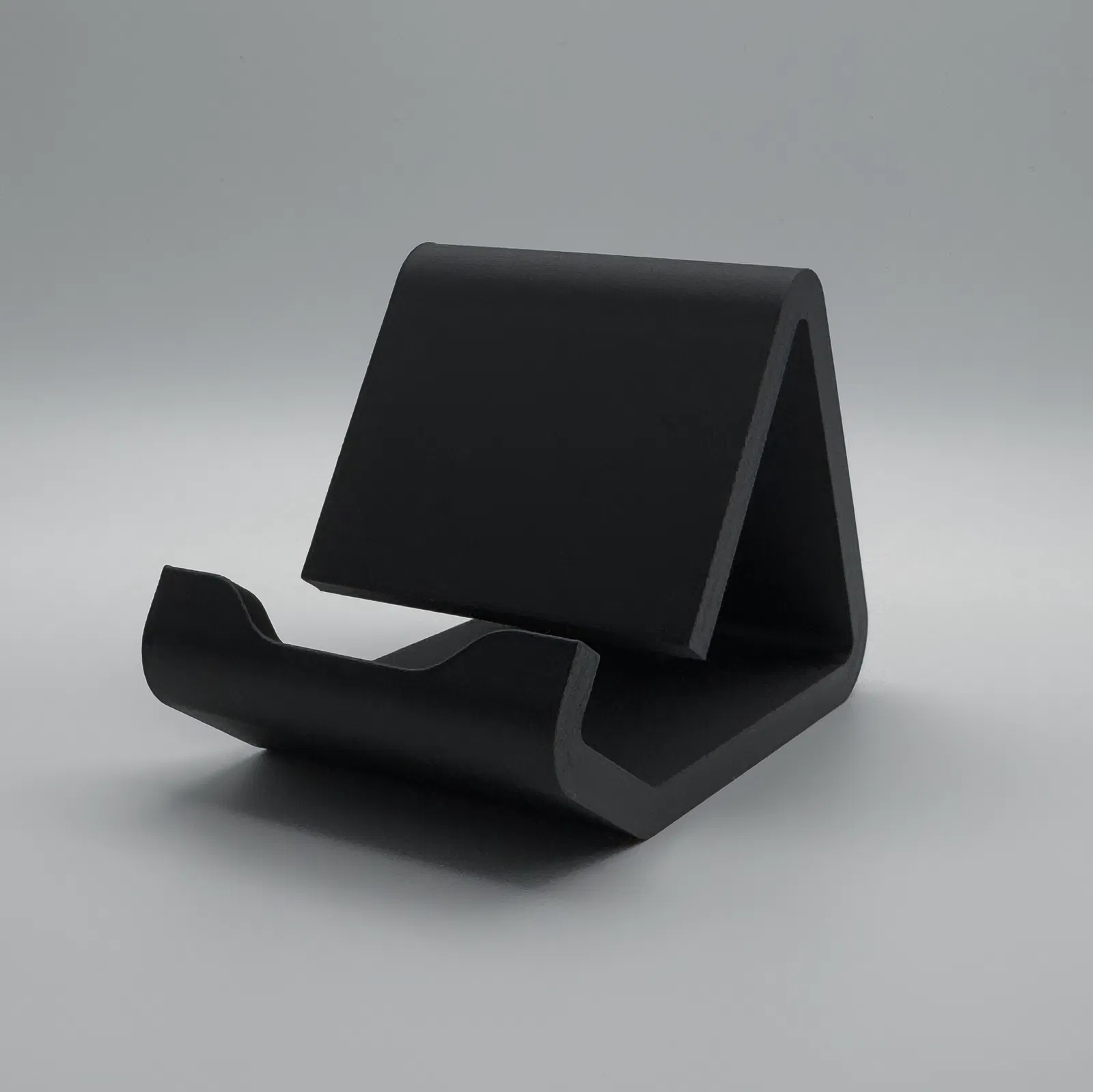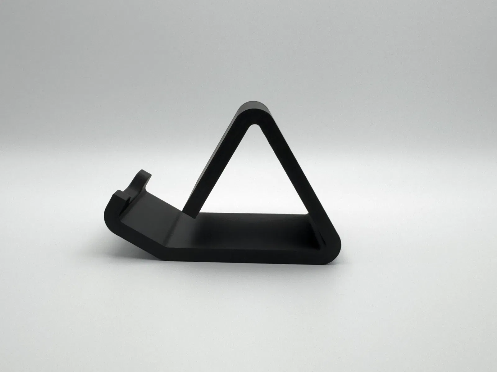 Kệ đỡ điện thoại tối giản để dùng trên bàn làm việc hoặc bàn đầu giường. Đây là bản remix từ một thiết kế public-domain, được tinh chỉnh hình học của rãnh đỡ để dáng gọn hơn và tăng độ ổn định.