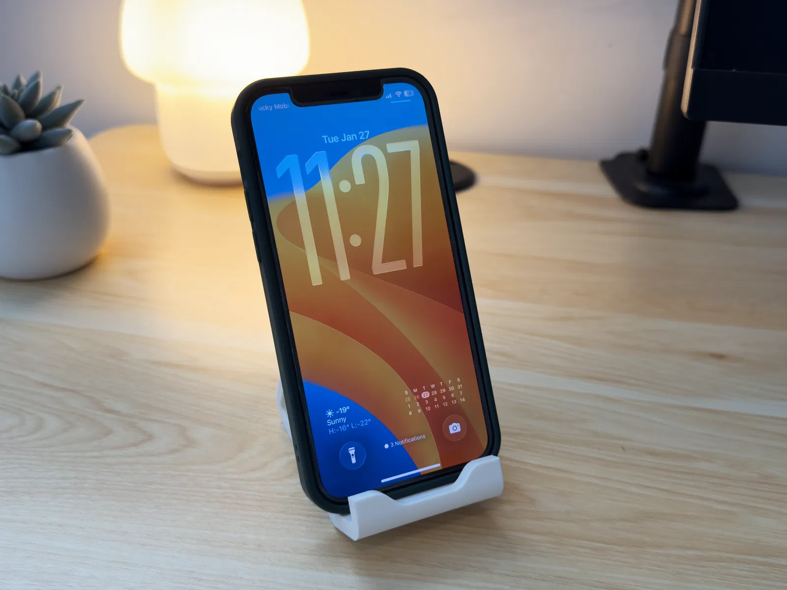 Kệ đỡ điện thoại tối giản cho bàn làm việc/bàn đầu giường, remix từ thiết kế public-domain. In FDM không cần supports, layer height 0,2 mm; phù hợp PLA/PETG. Rãnh gọn hơn, ổn định hơn, hợp nhiều máy có/không ốp.