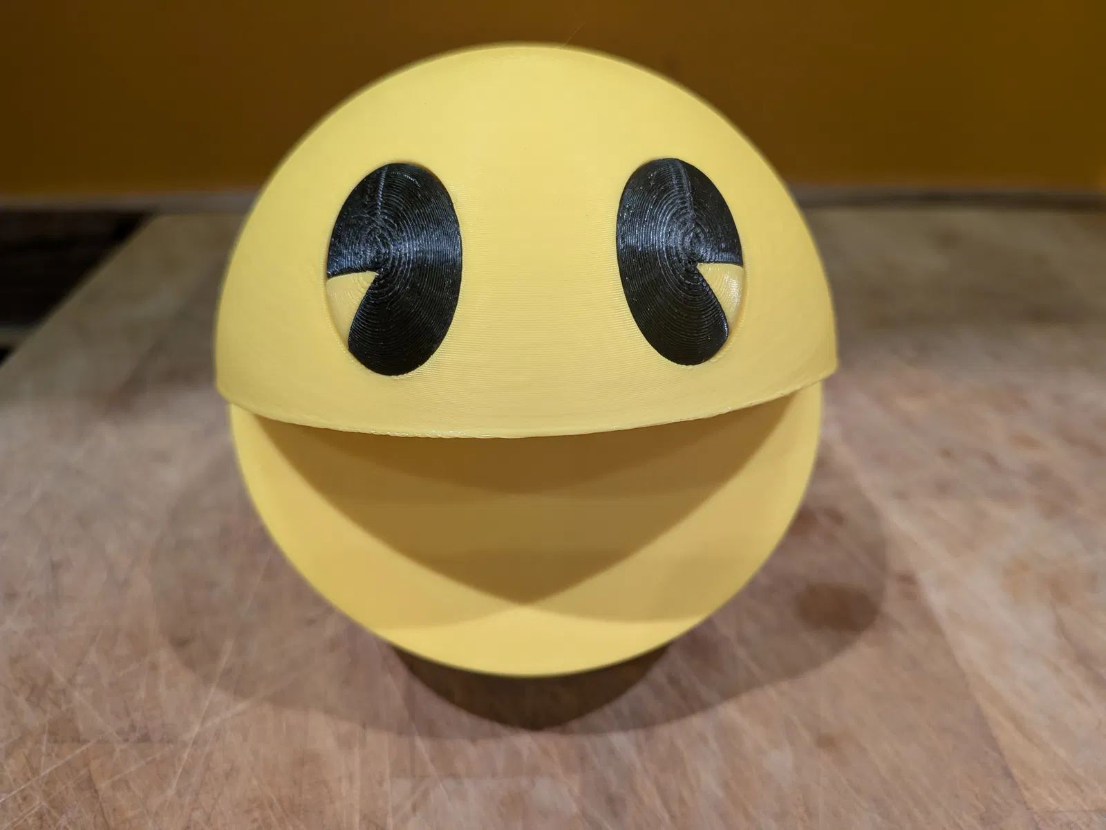Hộp tiết kiệm kiểu Pacman “Chomper” bản No AMS, có khe thả xu và nút bung vặn ở đáy. In gần như không cần supports. Kèm hướng dẫn xử lý mắt, lưu ý dùng epoxy và mẹo adaptive layer height 0.3 trong Orca Slicer.
