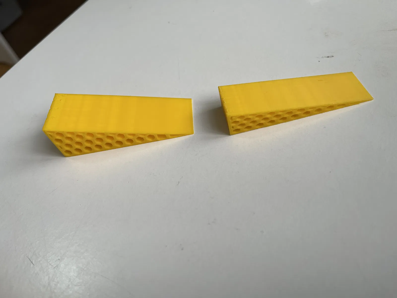 Mẫu Door stopper V2(honycome) với thiết kế honeycomb, rộng 8 cm và dài 1.5 cm. Phù hợp cửa có khe hở sàn–cửa trung bình đến lớn nhờ độ dốc cao. Có thể lót thêm vật liệu chống trượt để bám chắc hơn.