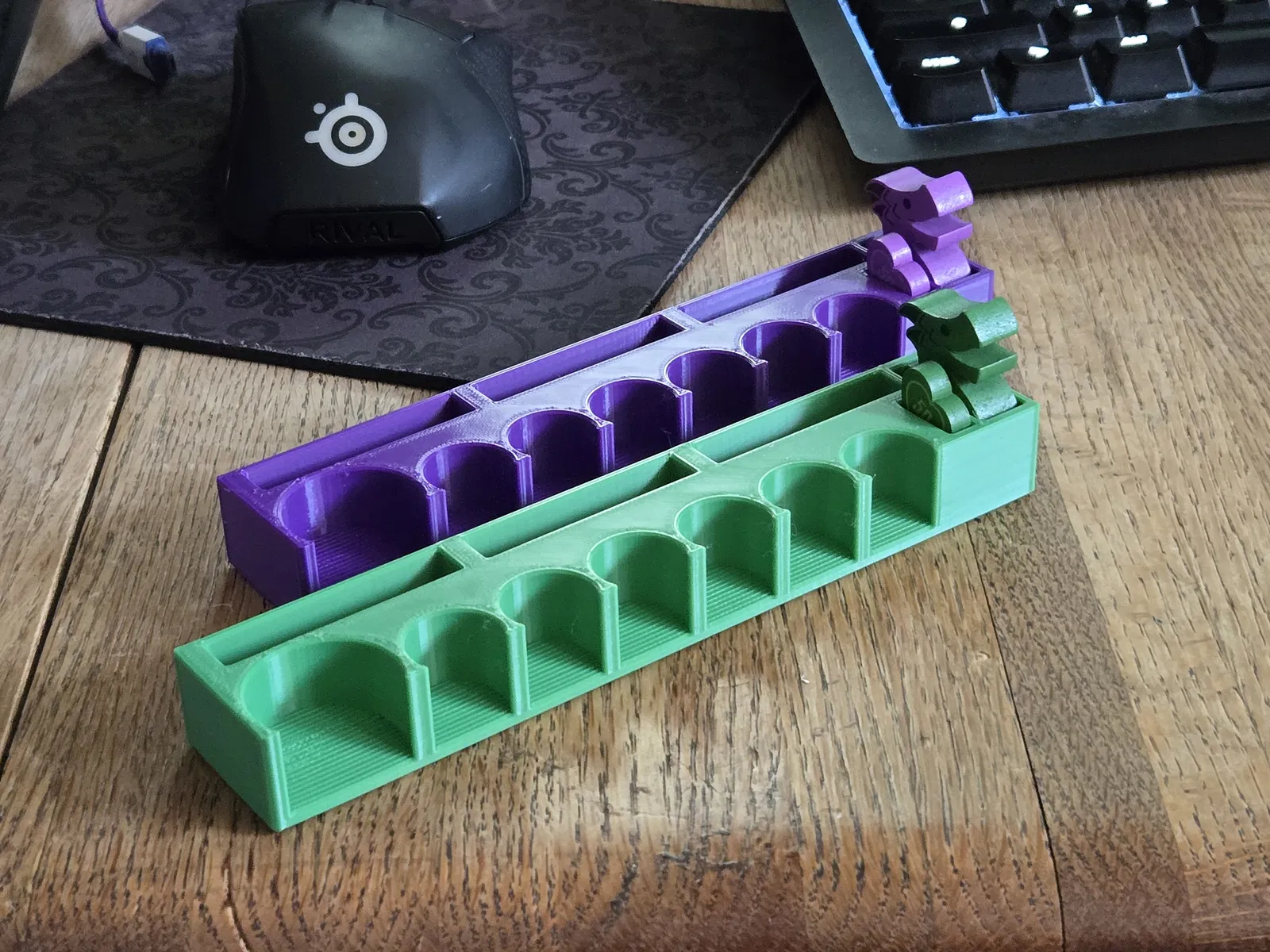 Bộ player resource organizer cho board game Flamecraft, giúp chứa tài nguyên và card của người chơi gọn gàng. Khe coin nghiêng dễ bỏ/đếm/lấy ra; có 3 khe card cho fancy dragons, artisan dragons và companion dragon.