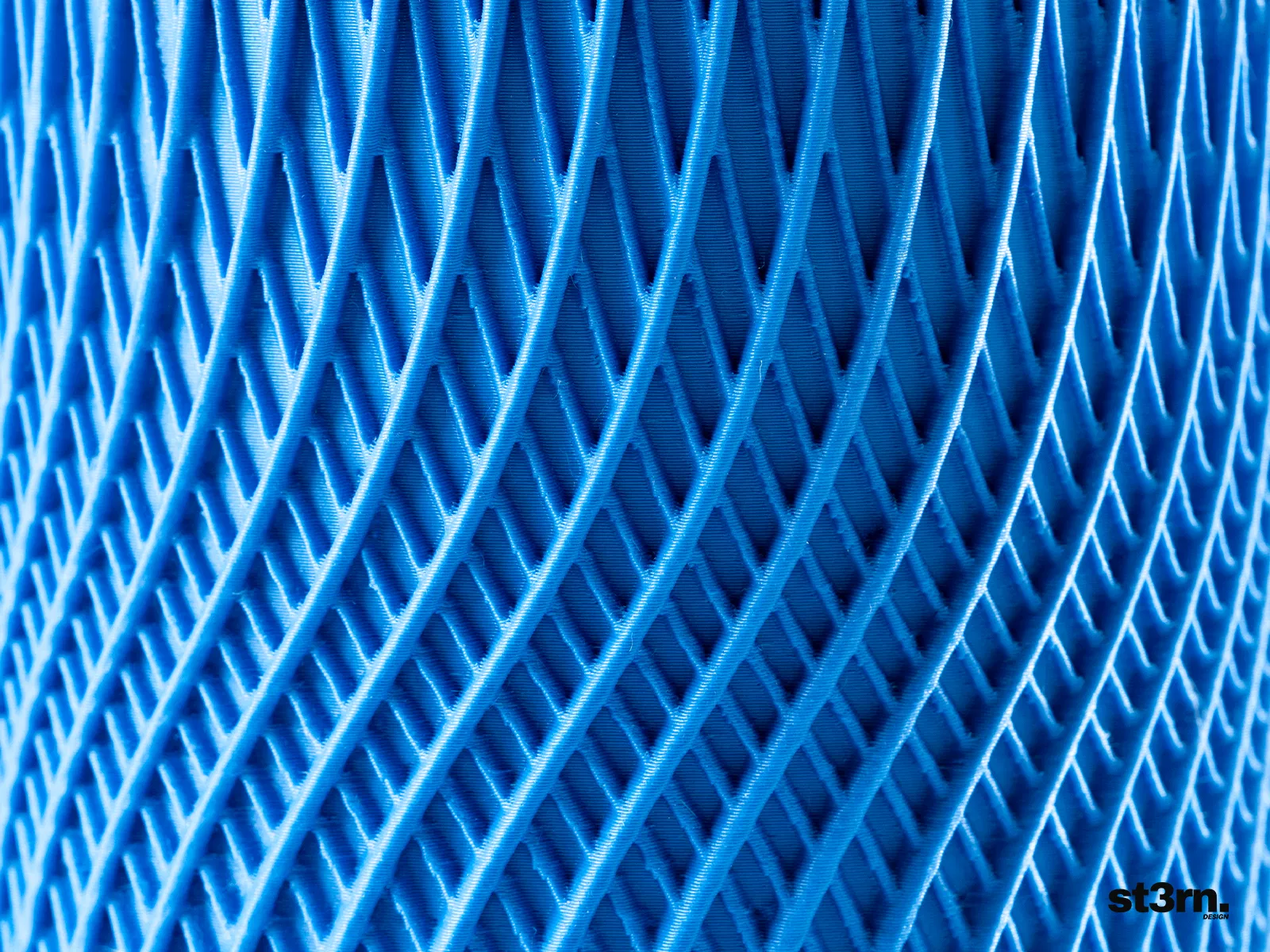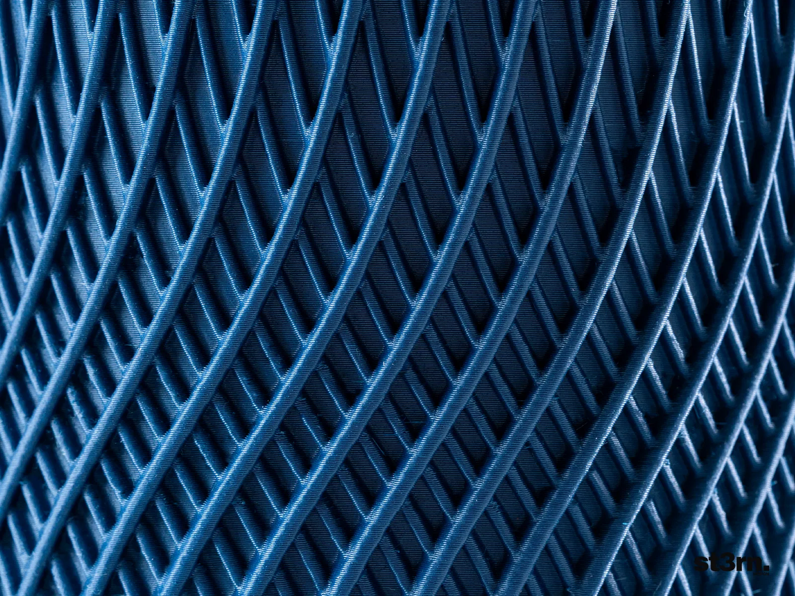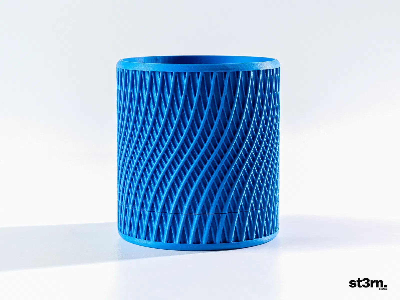 Vortex ⬝ Planter là chậu trồng cây kiểu hiện đại với họa tiết lưới xoắn đẹp mắt và khay hứng nước ẩn dạng vặn tháo. Có 2 kích thước (cao 100mm/125mm), in không cần supports, infill gyroid 15%.