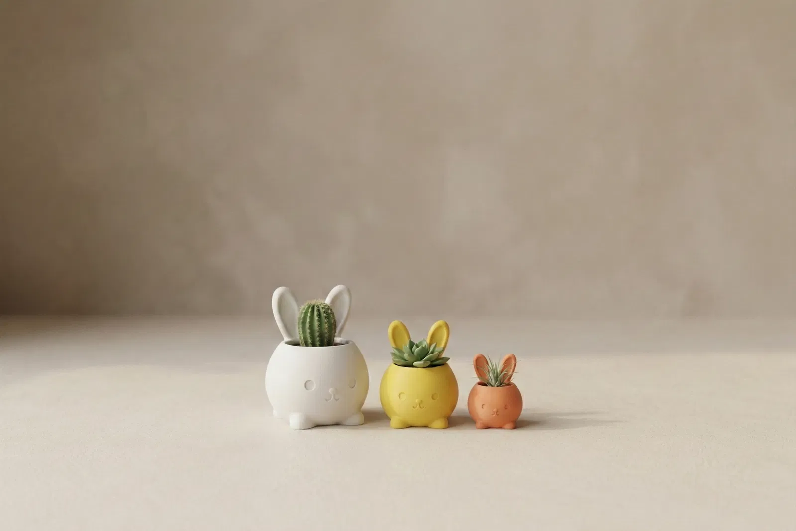 Bunny Planter ♡ là bộ chậu thỏ tối giản, dễ thương cho không khí Easter. Thiết kế tối ưu để tai thỏ in đẹp, không cần supports. Phù hợp trồng sen đá/xương rồng, đựng kẹo hoặc làm organizer bàn làm việc.