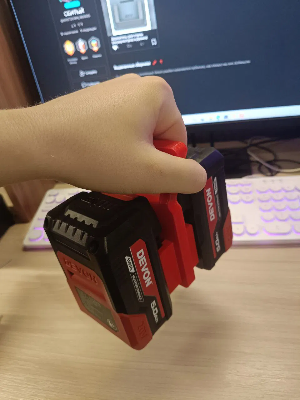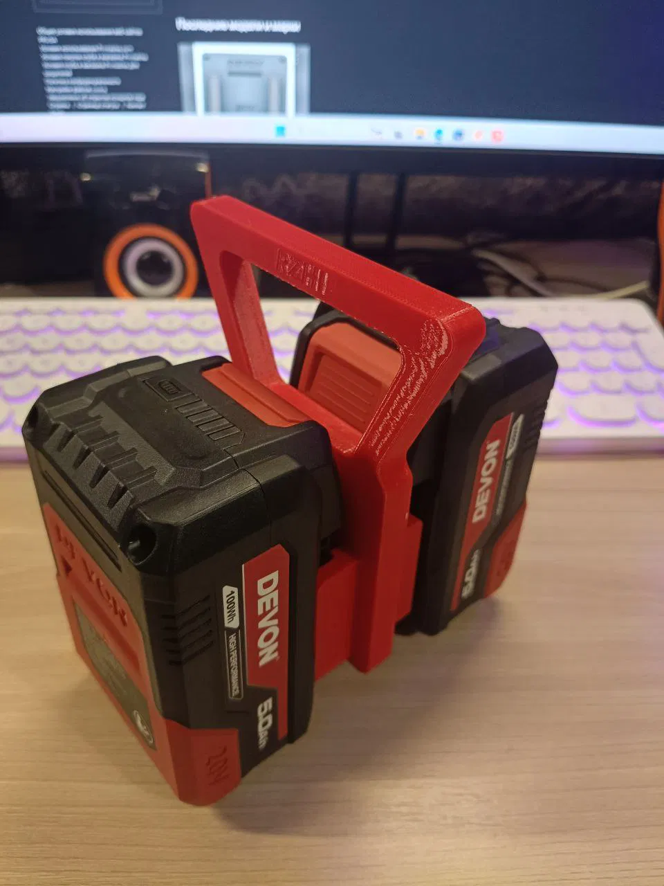 Giá/khung переноска liền khối để mang theo pin (battery) Devon. Mình in bằng PETG, nozzle 0.4 mm, layer 0.2. Giải pháp gọn nhẹ và rất tiện để vận chuyển pin.