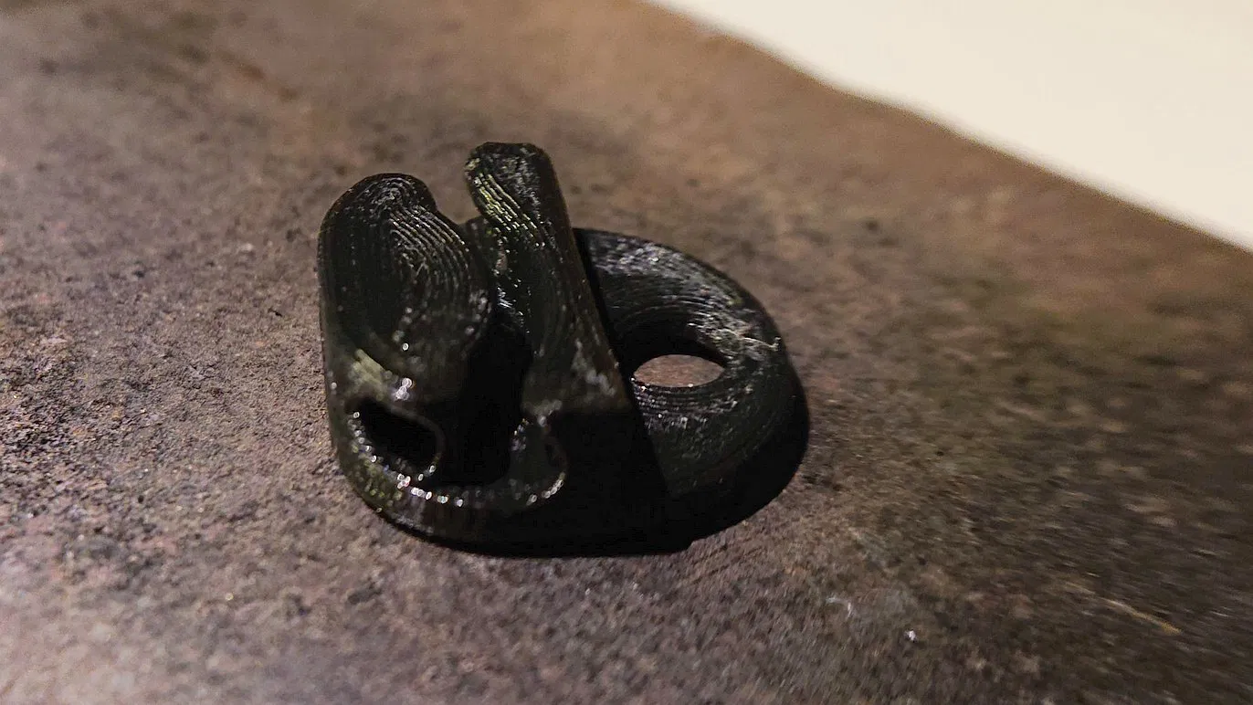 Filament clip đơn giản nhưng rất chắc, giúp chống tuột vòng và giữ đầu filament ổn định. Thiết kế dày trên 1 mm, không gắn vào spool, có lỗ luồn vòng trước và miệng lỗ bo để tránh kẹt khi in.