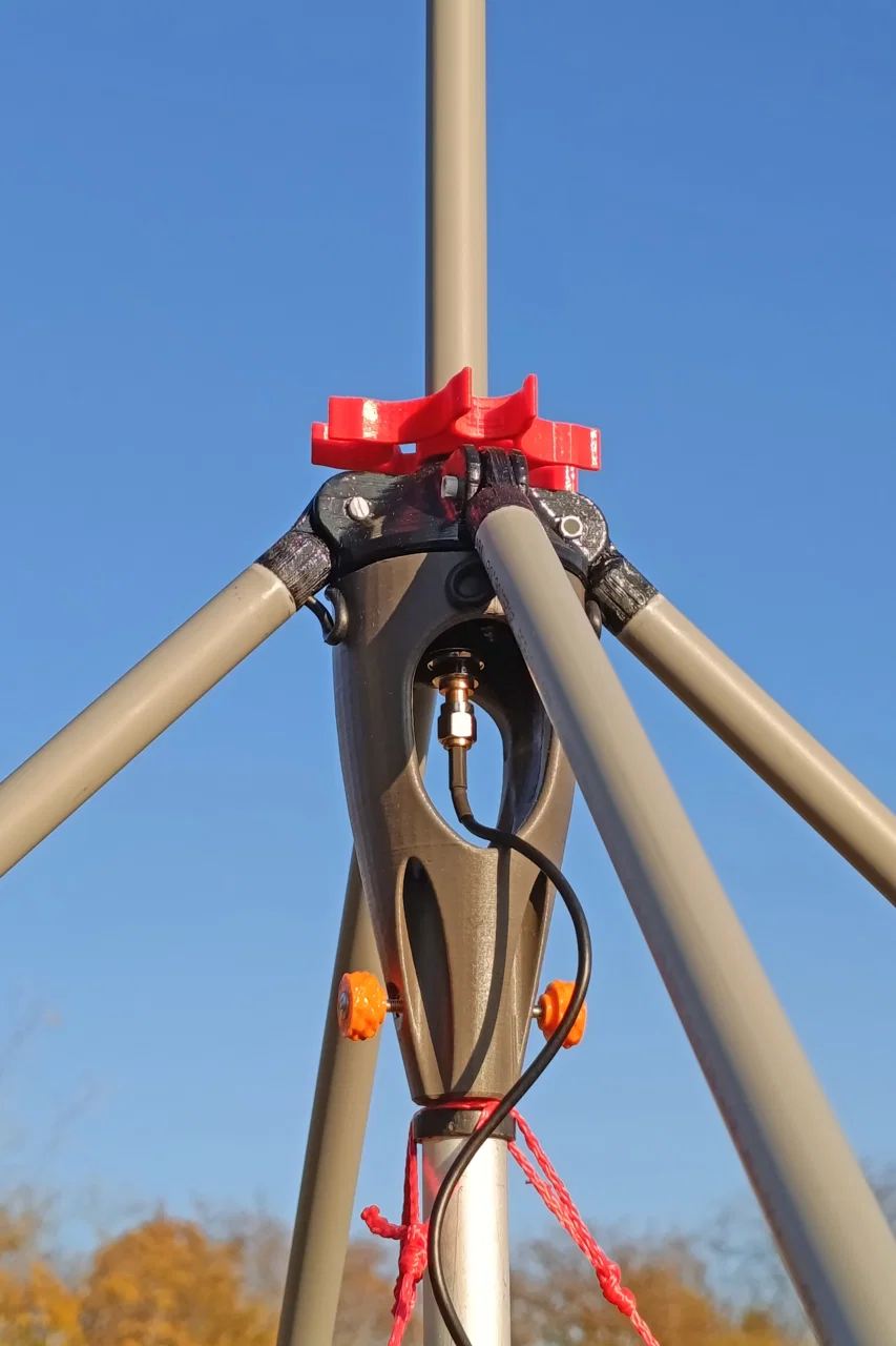 Bộ hub ăng-ten và phụ kiện có thể in 3D này giúp bạn làm một ăng-ten ground plane 1/4 bước sóng với chi phí hợp lý, gọn nhẹ, rất phù hợp để nghe airband. Hub trung tâm chứa đầu nối BNC và đỡ phần monopole cùng các radial; các chi tiết như nút bịt, bản lề và spacer in sẵn giúp lắp ráp và mang đi dễ dàng, chắc chắn. Thiết kế được tối ưu cho dùng ngoài trời — các phần in dễ in bằng PETG để tăng khả năng chịu UV và thời tiết, đồng thời hình học cho độ vững cơ khí tốt. Các radial và phần tử thẳng đứng được làm từ ống luồn PVC tiêu chuẩn, với dây mềm (stranded wire) được hàn vào ground plate để làm kết nối điện.