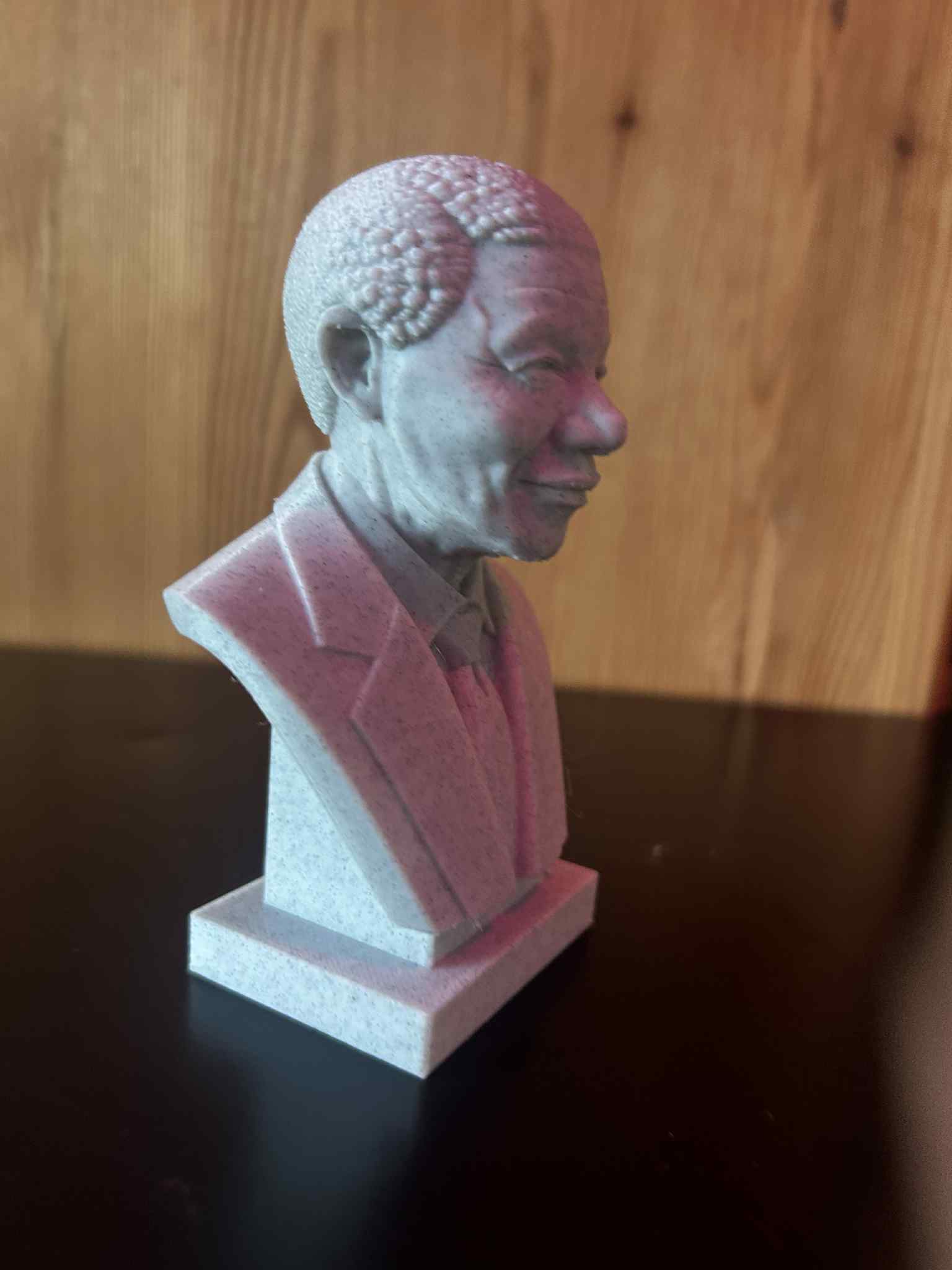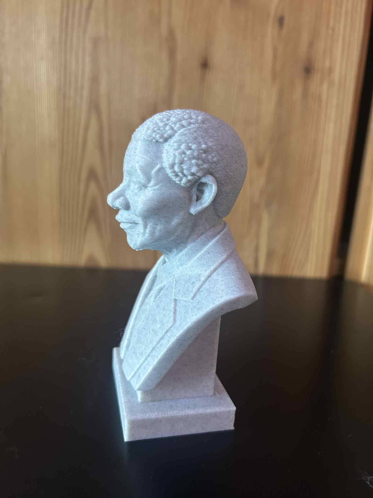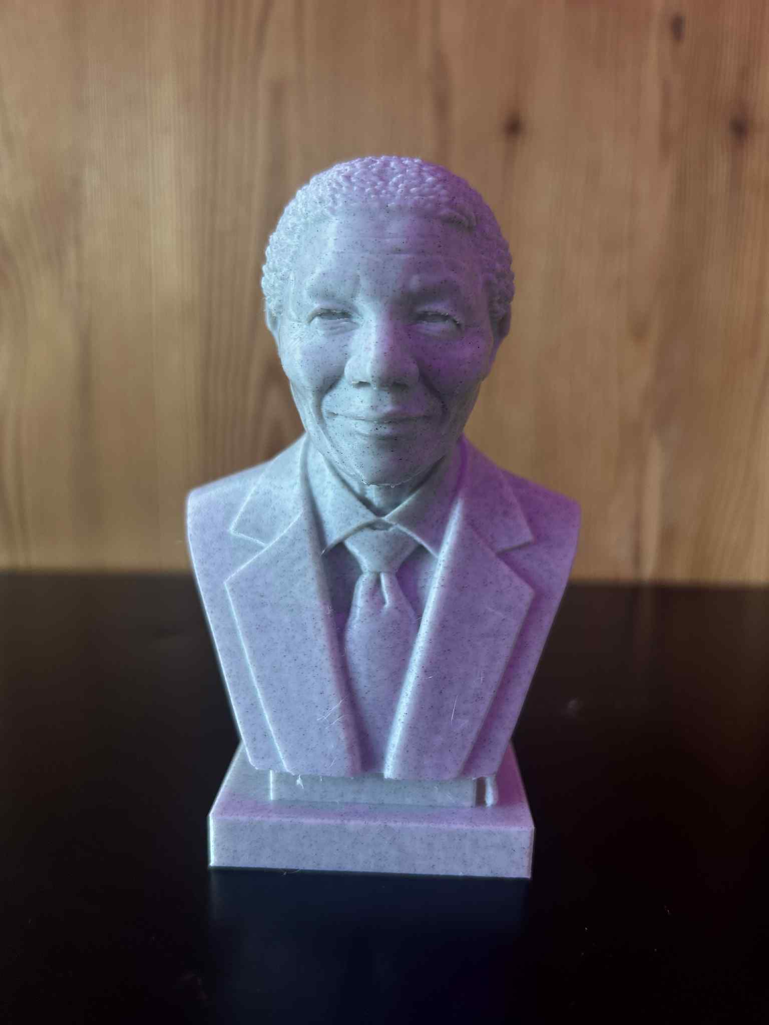Mẫu bust in 3D tôn vinh Nelson Rolihlahla Mandela (Madiba), biểu tượng chống apartheid. Đường nét được nhấn mạnh thể hiện phẩm giá, sức mạnh tinh thần và lòng nhân ái; gương mặt điềm tĩnh, kiên định gợi lên tù đày và sự khôn ngoan.