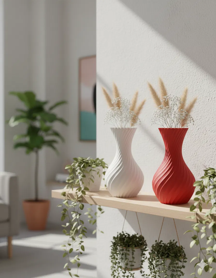 Bình hoa xoắn ốc hiện đại với hiệu ứng ánh sáng–bóng đổ đẹp mắt, tối ưu cho Vase Mode để in nhanh và mượt. Cao 260mm (có thể scale), hợp cắm hoa khô/cỏ pampas hoặc trưng bày decor.