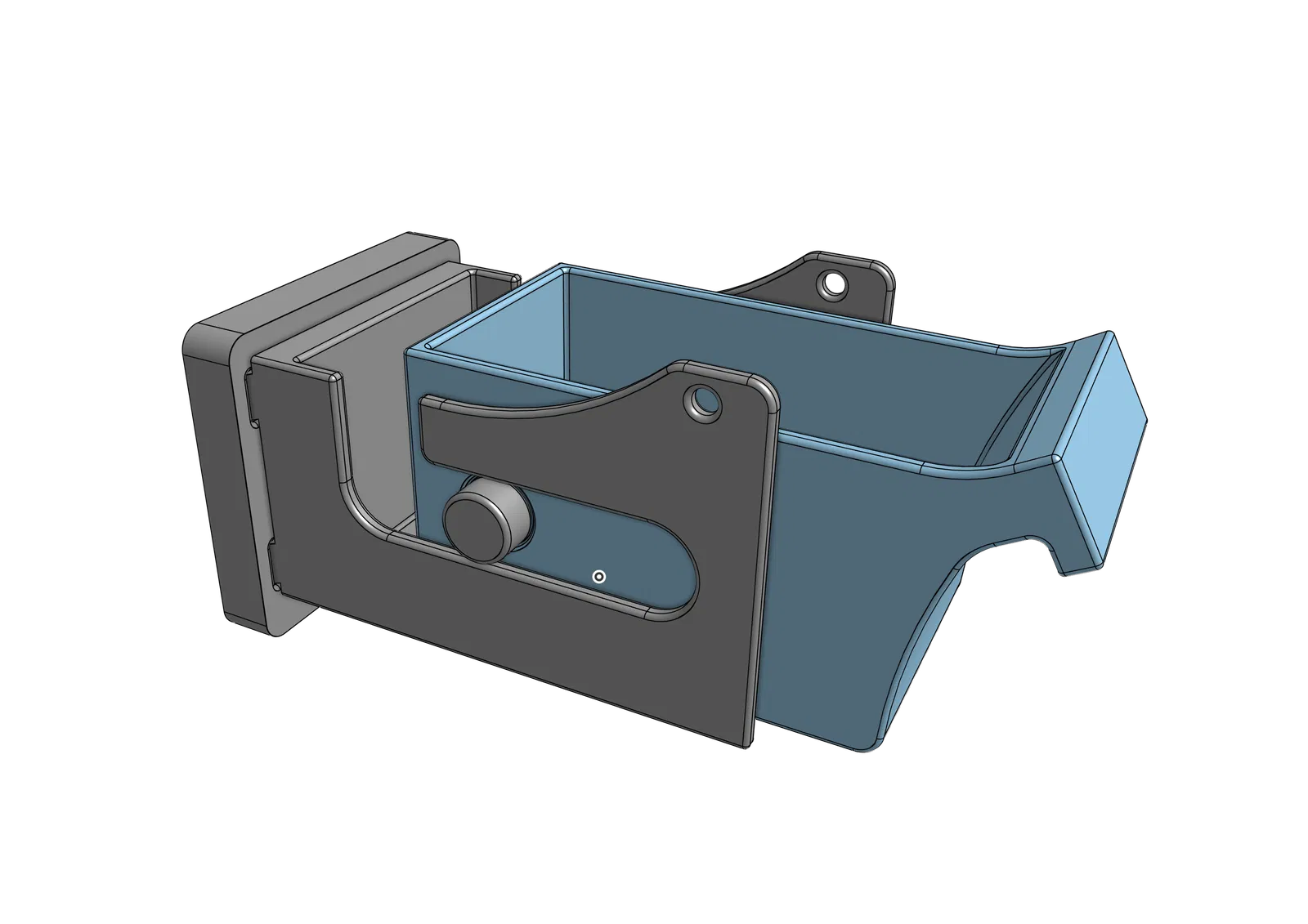 Sau đó, hộp chứa sẽ trượt vào giá đỡ, và giá đỡ sẽ gắn/trượt vào tấm lưới (miếng dạng hình vuông, có các khe cắt cho chốt của giá đỡ).