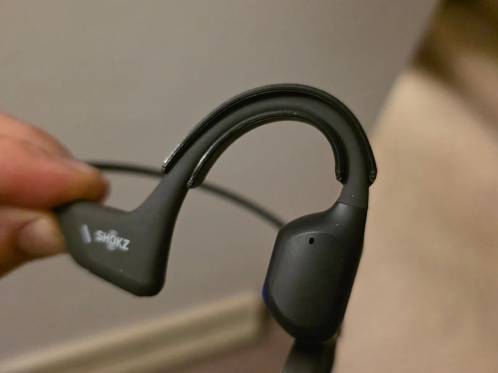 Mình chưa bao giờ hài lòng với cách cái Shokz ôm trên đầu. Chất lượng âm thanh sẽ hay hơn nhiều nếu các transducer nằm sát tai hơn, nhưng cái band lại hơi rộng nên transducer không chịu đứng yên đúng vị trí. Mình thiết kế món nhỏ này để siết bán kính phần earpiece và giữ transducer cố định.