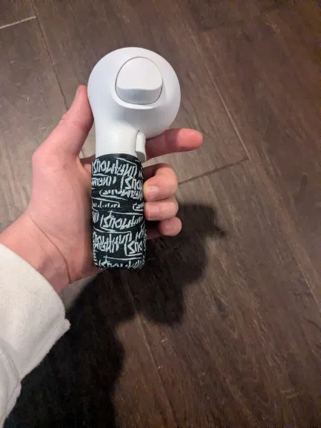 Mẫu slip-on gắn lên controller Meta Quest 3 để vặn bình paintball HPA tank khi chơi Paintball Playground VR. Thiết kế bám sát form tay cầm gốc, ren tolerance ổn, giữ chắc. Gợi ý in: 15% gyroid, 4 walls, 0.2mm.