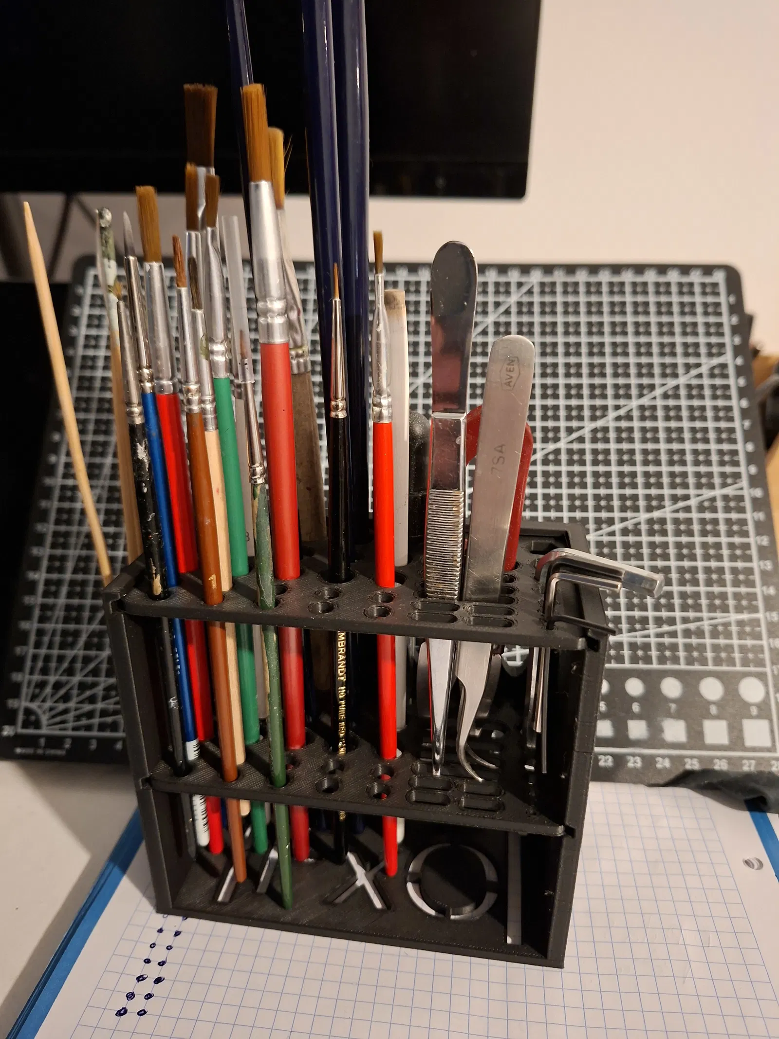 FxO-BrushHolder là giá đỡ đơn giản giúp bạn cắm cọ và sắp xếp gọn các dụng cụ làm mô hình cỡ nhỏ. Phù hợp để để trên bàn làm việc, dễ in 3D và sử dụng hằng ngày.