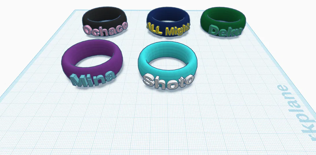 Bộ nhẫn theo chủ đề My Hero Academia gồm All Might, Deku, Ochaco, Mina và Shoto. Mình làm mẫu này cũng mất một chút thời gian; bạn cứ in theo cách bạn thích, tuỳ chọn hoàn toàn.