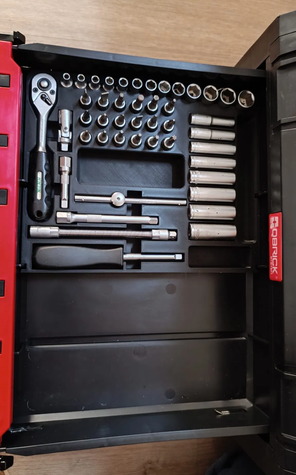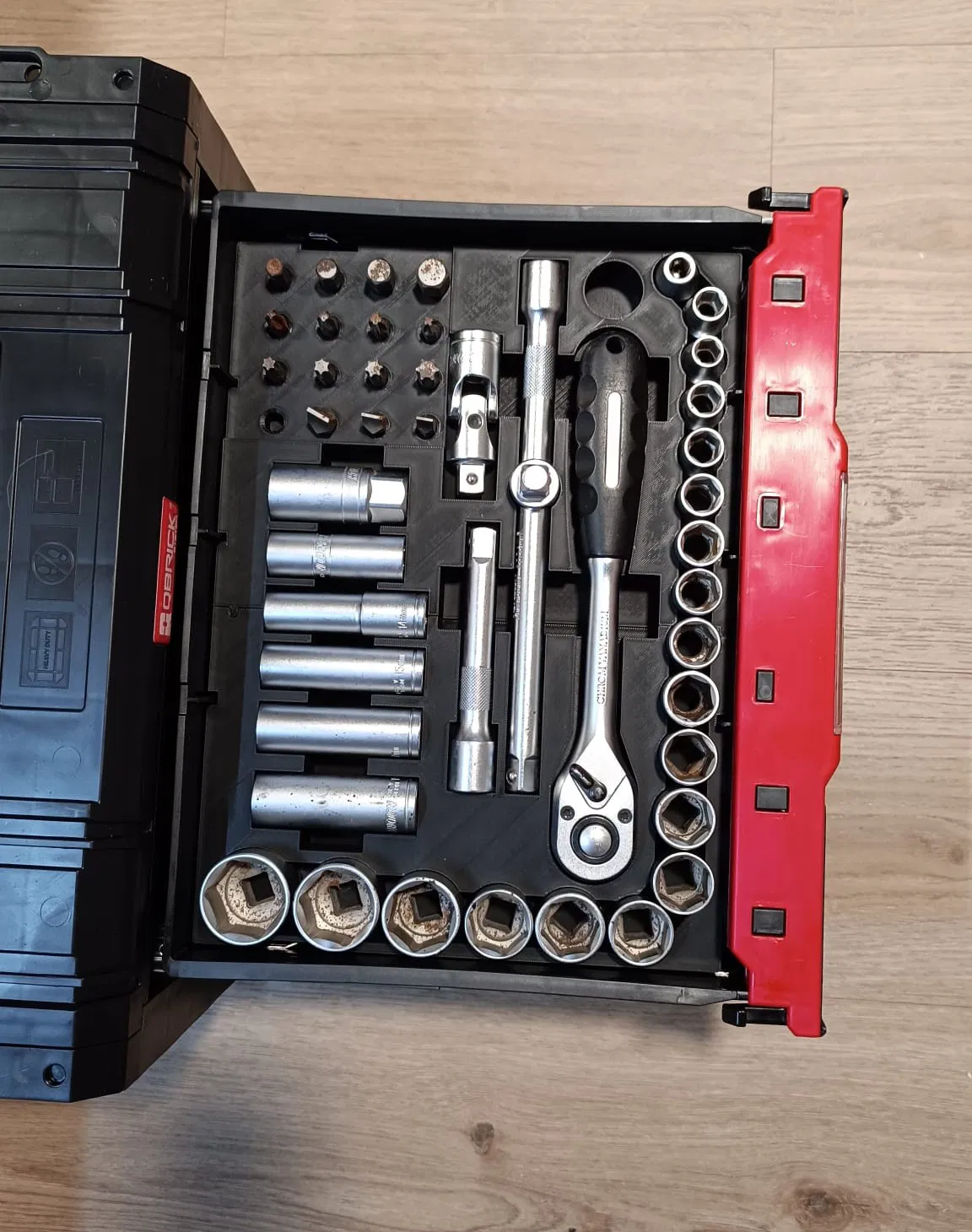 Khay lót dùng để sắp xếp và cất đầu tuýp (Gola) Honiton trong hộp Qbrick system pro, giúp đồng bộ cách lưu trữ dụng cụ. Khuyến nghị in nozzle 0,4mm, layer 0,2mm, 2 walls, infill 10%, dùng PLA là đủ.