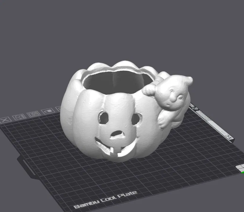 Mẫu kürbis (bí ngô kèm ma/ghost) được quét bằng 3D scanner. Thiết kế đơn giản, dễ in 3D, phù hợp để trang trí theo chủ đề Halloween hoặc trưng bày.