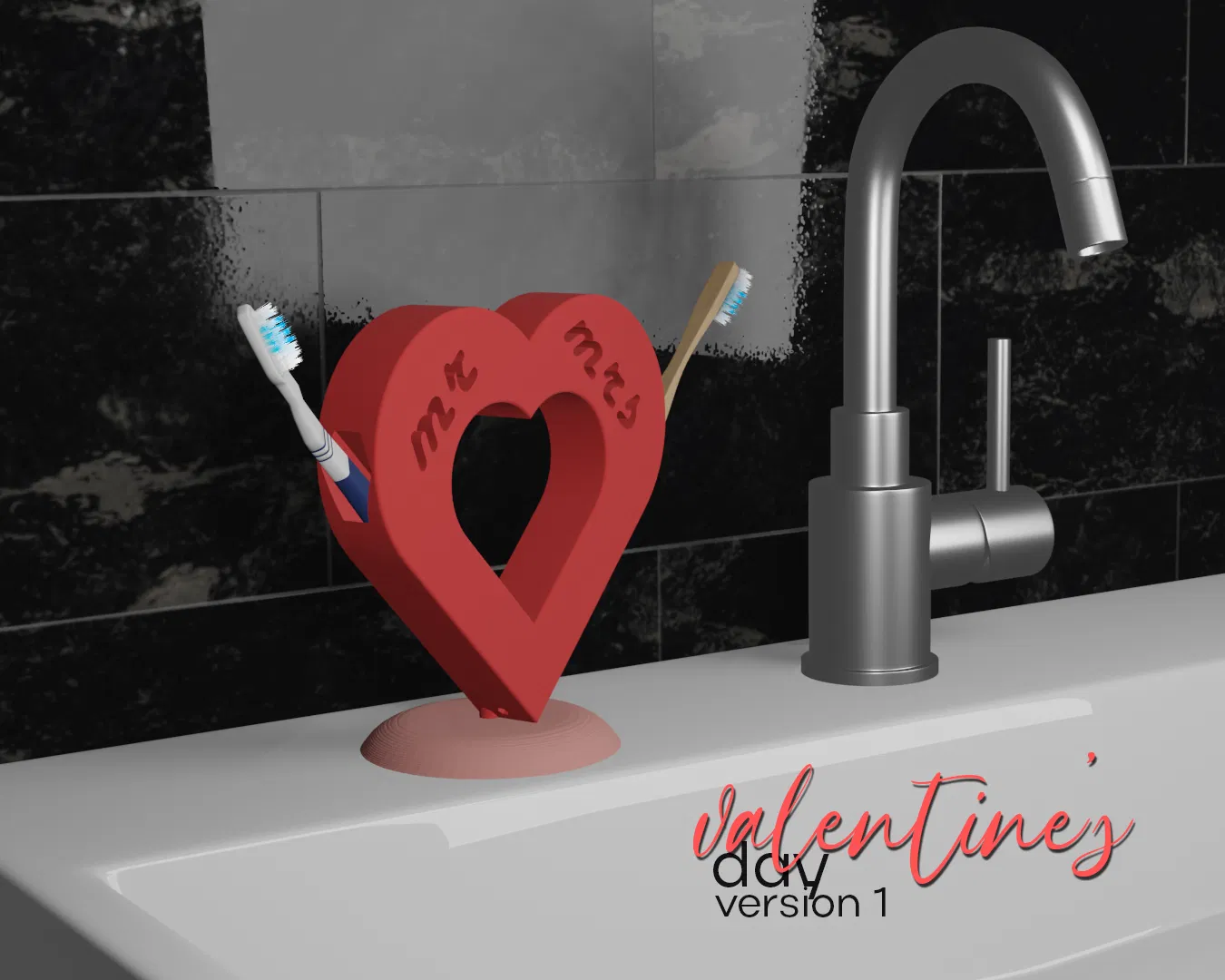 Giá đỡ bàn chải đánh răng cho Mr. và Mrs., in 2 phần, không cần support và lắp ráp nhanh. Có 2 phiên bản: bản 1 góc lỗ dốc hơn (tốn chỗ hơn), bản 2 góc nhỏ hơn (gọn hơn).