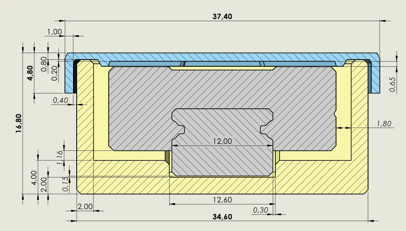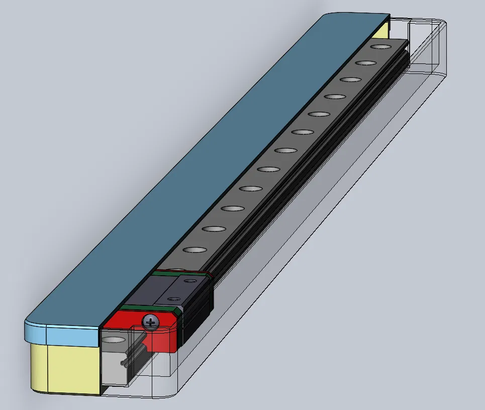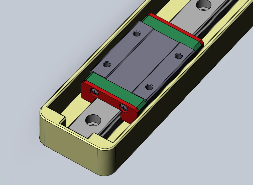 Bồn ngâm có nắp dùng để ngâm và làm sạch ray MGN12 dài 400mm (kèm carriage) bằng IPA hoặc các dung dịch/dung môi khác, giúp tẩy dầu mỡ và cặn bẩn trước khi lắp ráp.