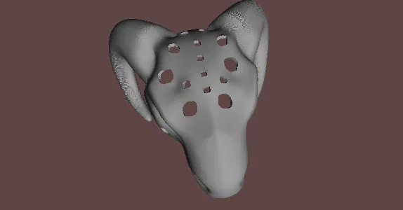 Mẫu Ram Head (V1) có sừng và các khe thoát khí (vents) giúp đeo dễ chịu hơn. Phù hợp làm fursuit/cosplay, puppets hoặc props. Nên scale lên vì mẫu hơi nhỏ và cần supports (khuyên organic supports).