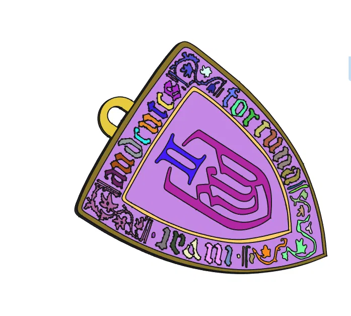 Mẫu móc khóa/mặt dây KCD 2 với dòng chữ “Audentes fortuna iuvat”. In bằng PLA Silk Bronze, kích thước 47 x 62 x 2,5 mm, phù hợp làm phụ kiện treo chìa khóa hoặc đeo cổ.