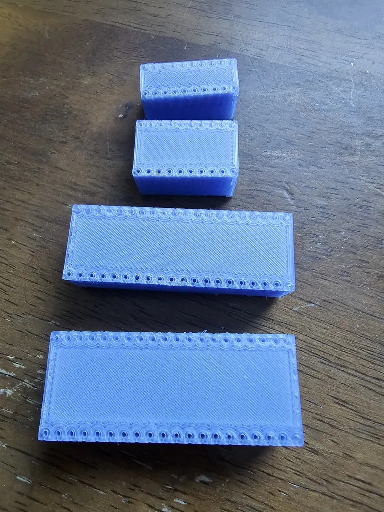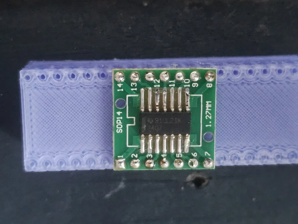 Mình thiết kế mấy cái jig này để giúp canh thẳng các chân pin làm từ dây đồng mạ thiếc (tinned copper leads) và hàn cho ra chiều dài đồng đều. Cái này dành cho những breakout board chuyển từ SMT sang DIP để cắm breadboard.