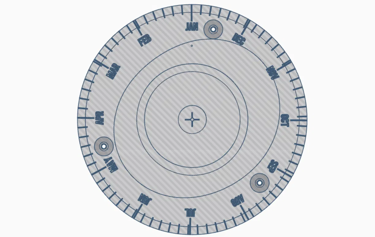 Đĩa và tay quay (Rotating Discs and Arms): Đĩa lớn có vạch giờ, đĩa nhỏ chỉnh theo các tháng. Ánh sáng đi qua các lỗ trên Sight và khi canh thẳng với Screen sẽ cho biết thời điểm chính xác trên mặt số giờ chính;