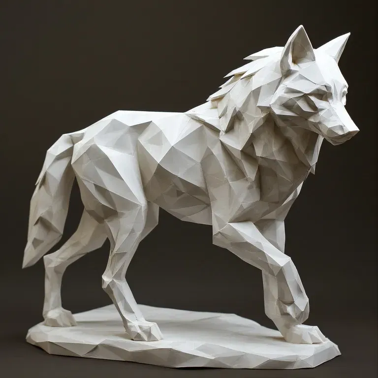 Tượng Sói Hình Học Ultra Low Poly Tối Giản