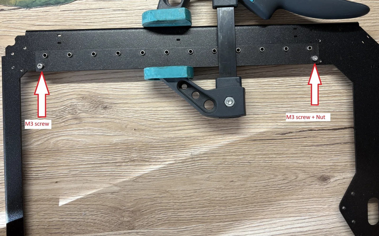 Cần taro ren M3 trên frame để bắt linear guides. Vì vậy phải tháo XY frame ra. Làm theo hướng dẫn lắp ráp Core One để tháo.