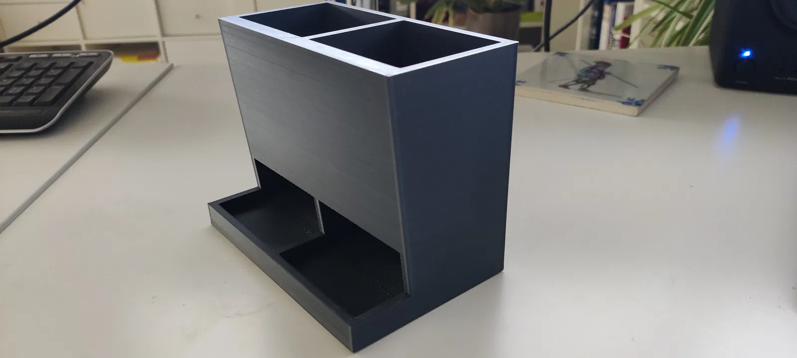 Thật ra không có gì đặc biệt. Mình in bằng PLA, infill 15% và bật supports cho phần vòm. Có thể thêm brim vì đáy phẳng. Mình cũng dùng ironing.