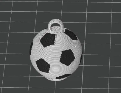 Móc khóa bóng đá dạng mảnh quả bóng. Bản in đang bị “flush”/đùn quá nhiều hơn mức cần thiết so với model; nếu ai có kinh nghiệm xử lý vấn đề này thì hỗ trợ giúp với.