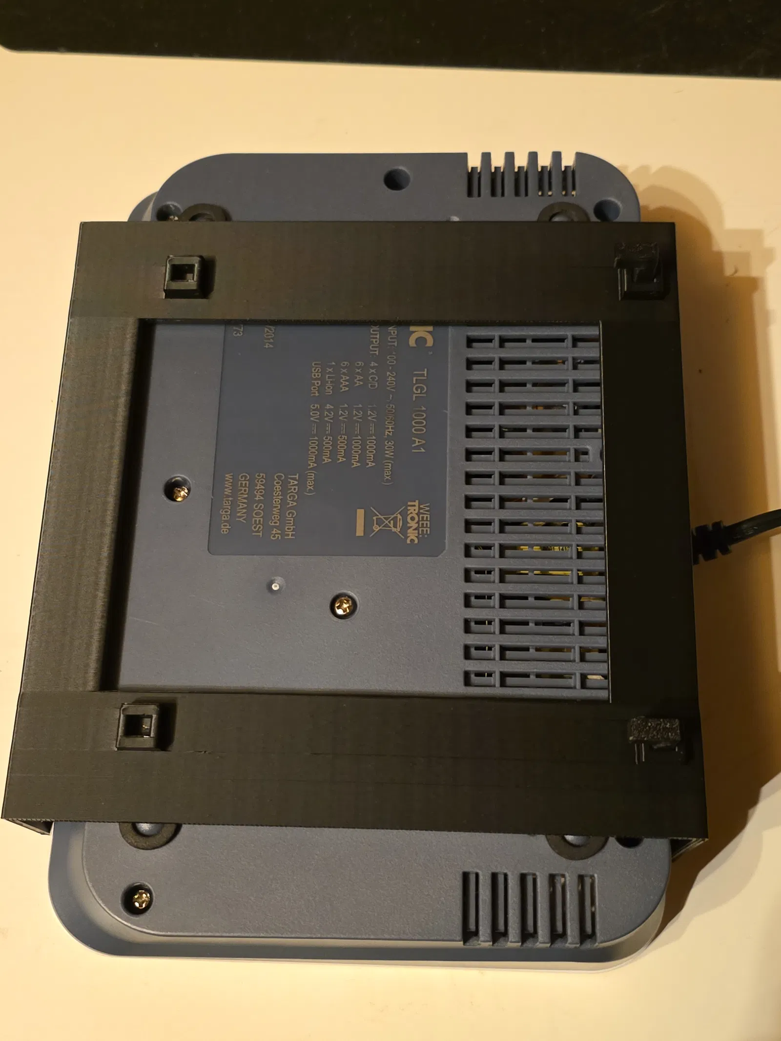 Model giúp gắn bộ sạc pin Tronic TLGL 1000 A1 lên bảng/tường Ikea Skadis. In bằng PLA với layer 0.28 mm, infill 25%. Cần tối thiểu 2 “simple hooks”, chỉ việc ấn vào các hốc để cố định.