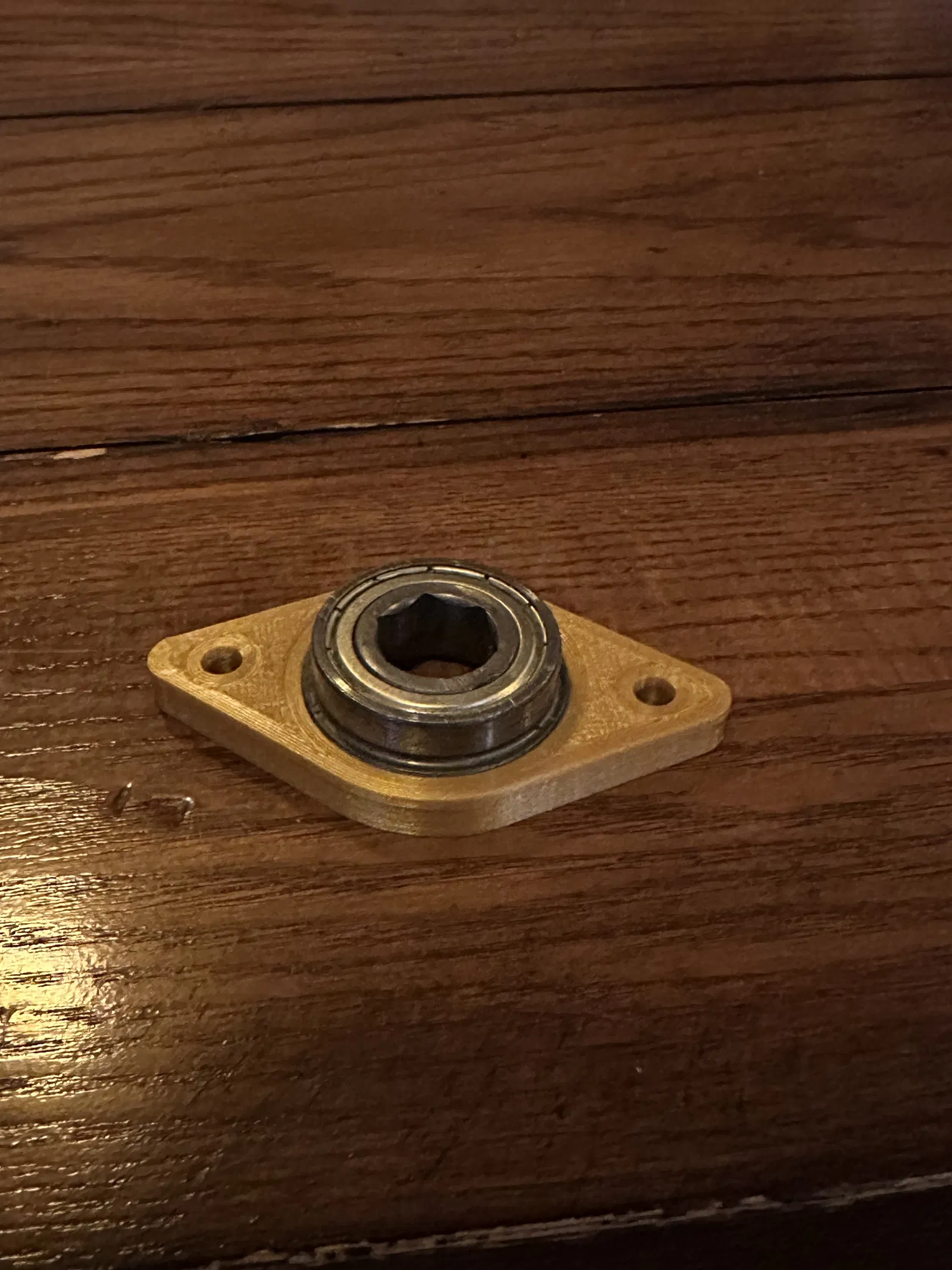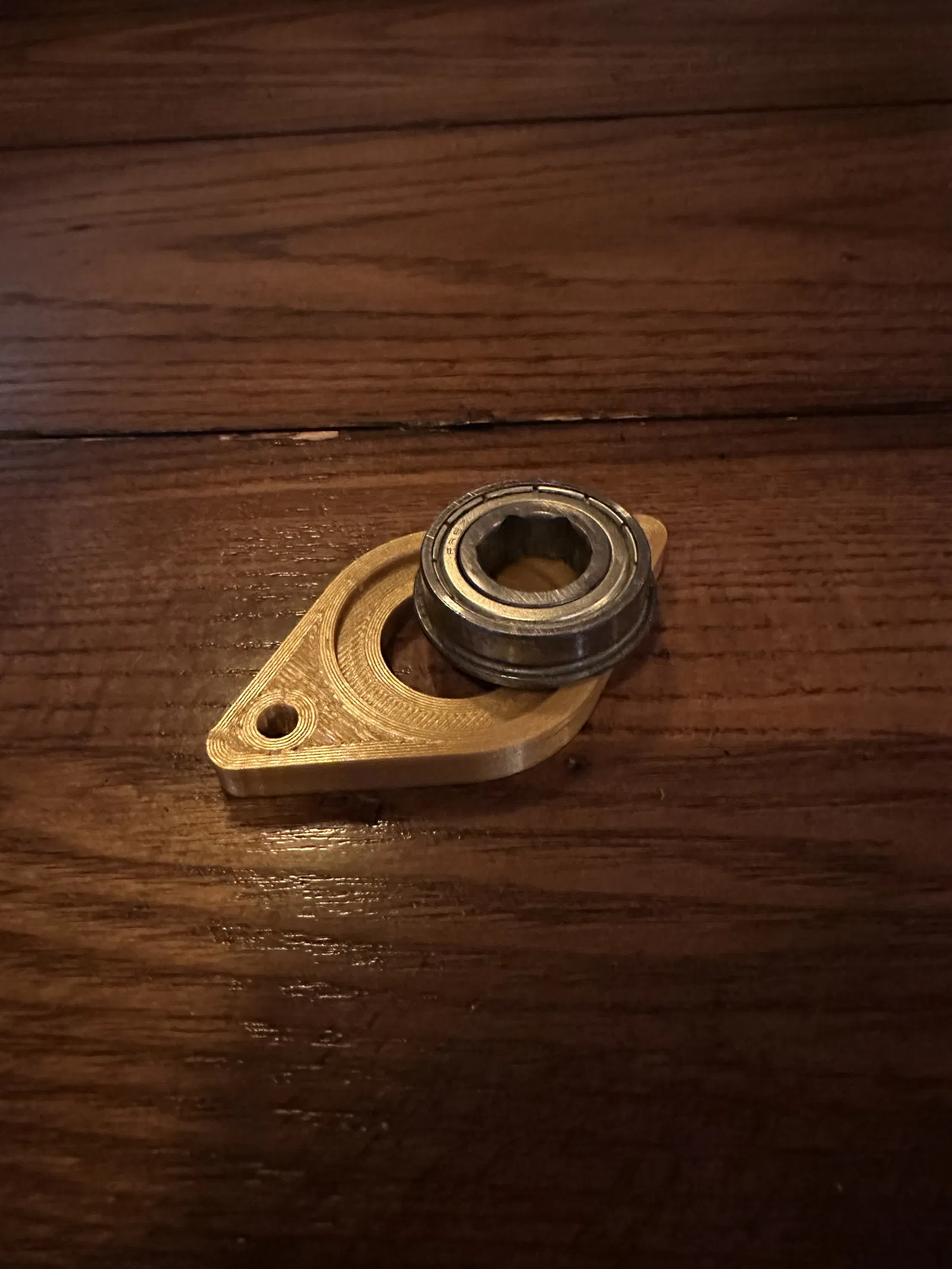 Đây là một tấm giữ bearing (bearing retention plate) in 3D dạng gọn, được thiết kế để kẹp giữ và định vị chắc chắn một flanged bearing. Tấm có hốc lắp bearing kiểu press-fit giúp canh tâm bearing và ngăn bearing bị trôi/lòi ra khi chịu tải, kèm theo hai lỗ bắt vít để dễ dàng cố định lên khung hoặc bracket. Thiết kế mỏng, dạng chữ nhật bo góc giúp cụm lắp nhẹ mà vẫn giữ canh thẳng sạch cho trục quay.