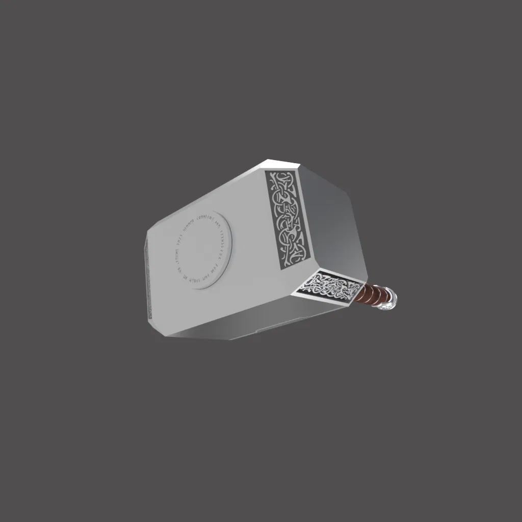 Mẫu 3D búa Thor (Mjolnir) chuẩn theo phim Marvel, đối chiếu ảnh màn hình và hậu trường để tăng độ “screen accurate”. Có lỗ 10mm trong cán để gắn rod gia cường và khe luồn dây da như trong phim.