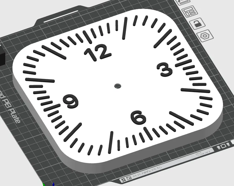 Mẫu Đồng hồ treo tường Apple với các vạch số đã được thêm sẵn trên mặt. Có thể tô màu trực tiếp trong slicer và dùng AMS để in đa màu, giúp mặt đồng hồ nổi bật và dễ xem hơn.