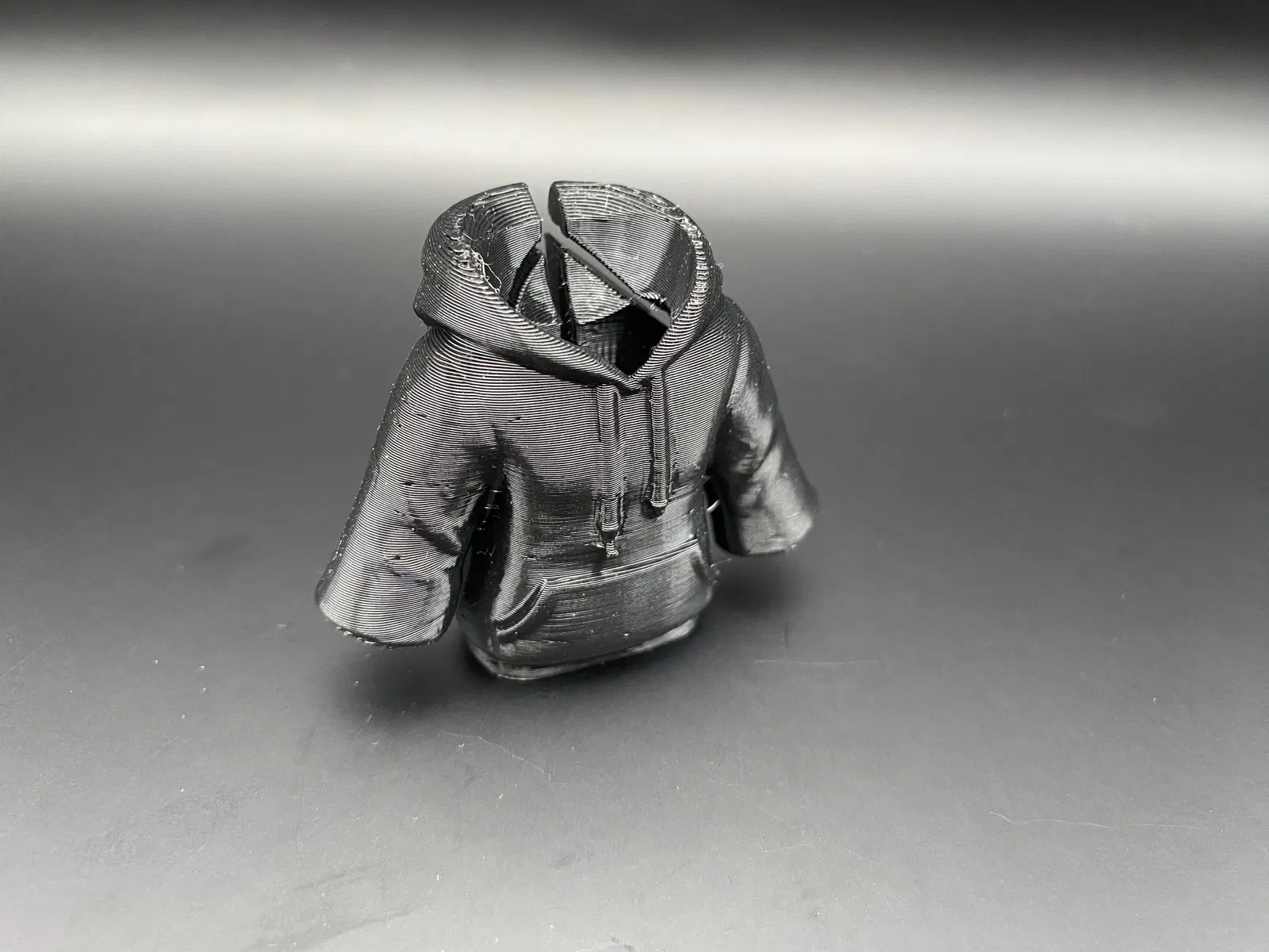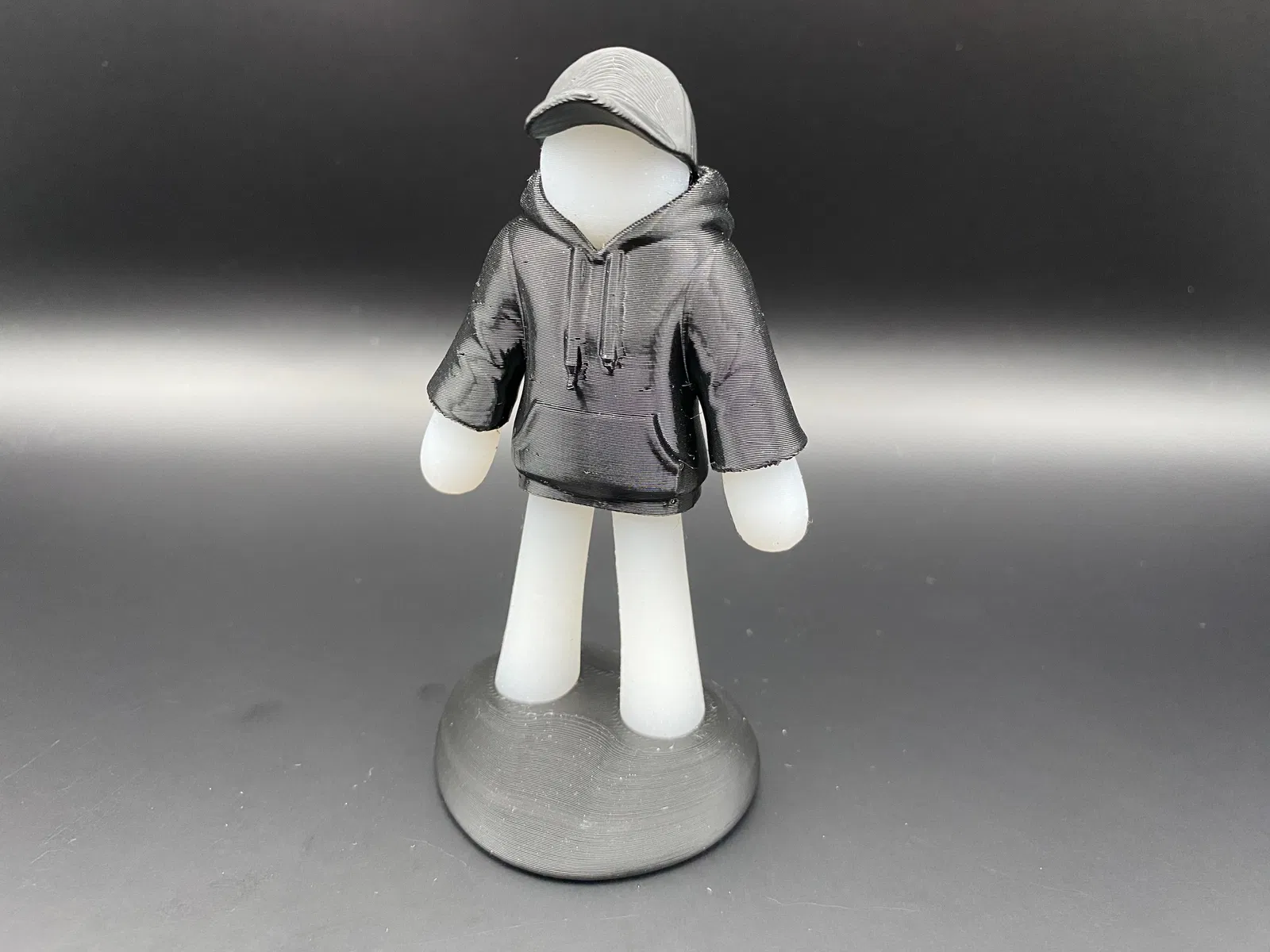Hoodie TPU làm riêng cho The Flexy Stick Figure, có rãnh phía lưng để mở ra và mặc vào cho stickman. Khuyến nghị in theo orientation mặc định với TPU 90A, 2 wall loops, 7% gyroid infill và tree supports.