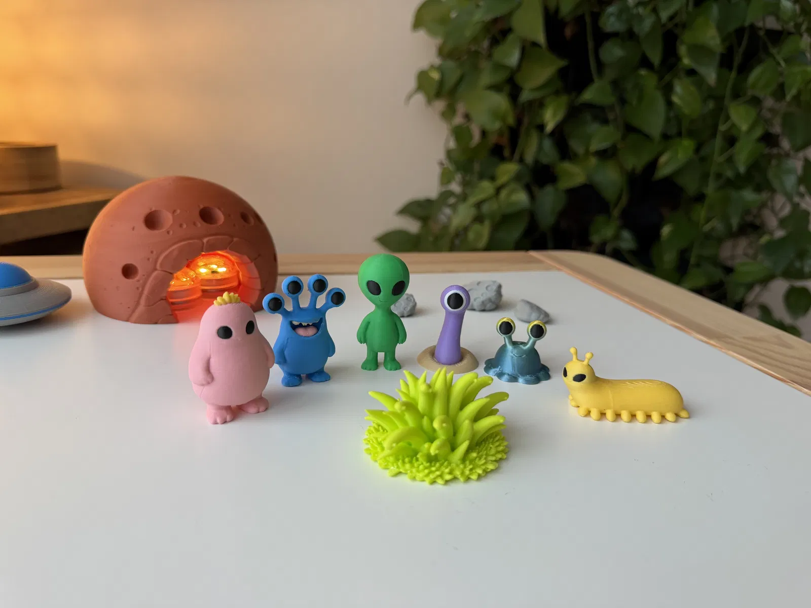 Alien Grass là mẫu cỏ ngoài hành tinh với lá dày, dáng lạ mắt, nhìn mềm và hiền hòa. Rất hợp làm diorama: tạo bãi đáp UFO, đường mòn dấu chân alien, và có thể gắn LED xanh để tạo hiệu ứng phát sáng ban đêm.
