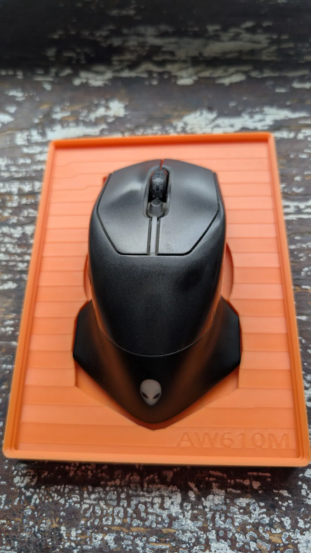 Đây là một block khoét Gridfinity thiết kế riêng để đặt chuột gaming không dây Alienware AW610M. Giúp giữ chuột chắc chắn, gọn gàng, và tiện với tay khi lấy từ ngăn kéo hoặc hệ lưới trên bàn.