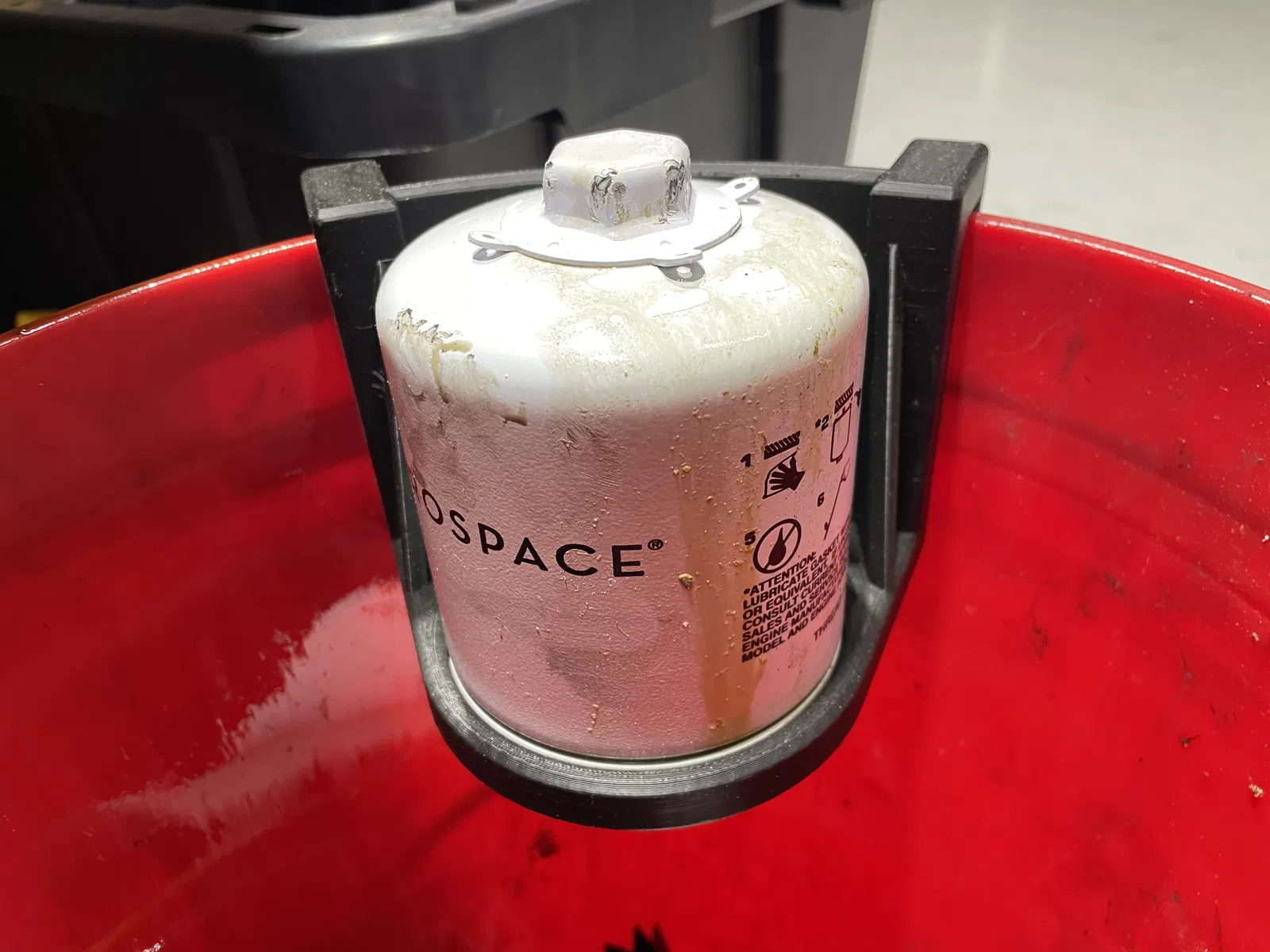 Dụng cụ xả dầu oil filter đơn giản cho general aviation (đường kính 3 3/4 inch), treo qua mép xô 5 gallon để xả dầu trước khi cắt lọc kiểm tra. In PLA (chỉ hợp dầu nguội), cần support tối thiểu.