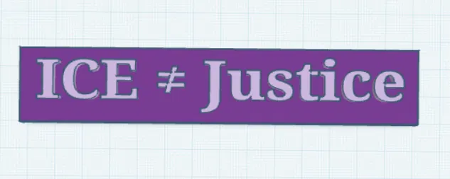 Đây là bảng hiệu biểu tình có thể in 3D với dòng chữ “ICE ≠ Justice”, được thiết kế để nâng cao nhận thức và ủng hộ các hoạt động activism. Mẫu này phù hợp để dùng trong biểu tình ôn hòa, trưng bày trên bàn làm việc, hoặc gắn lên tường.