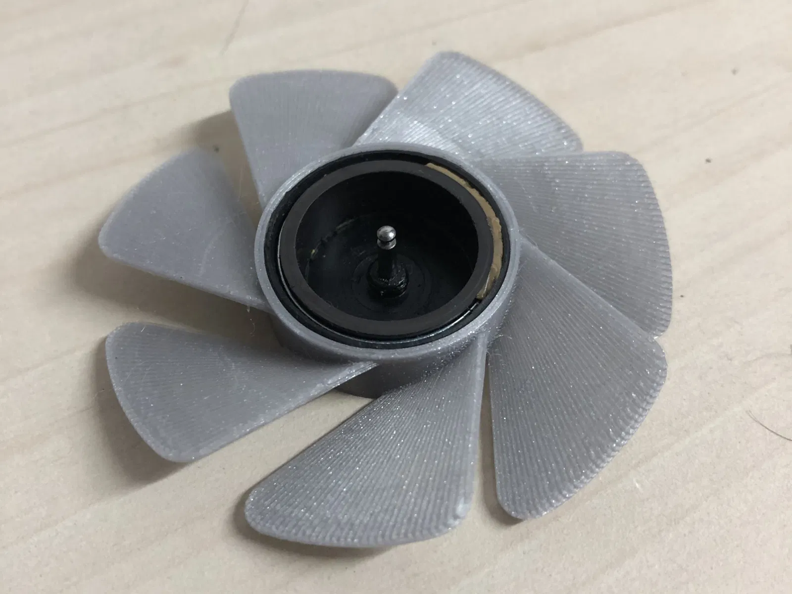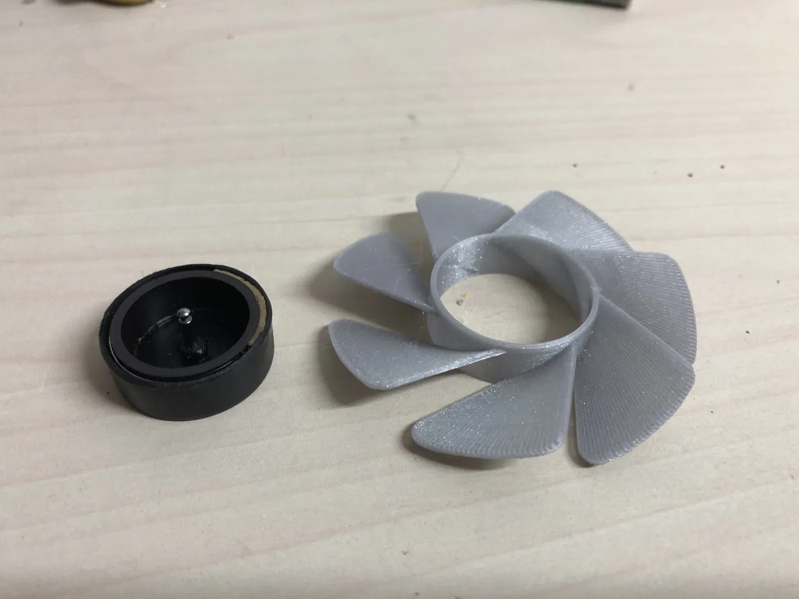 Quạt đầu tiên mà tôi tìm thấy không hoàn toàn khớp, vì vậy tôi đã phải mô hình hóa toàn bộ mặt trước để điều chỉnh nó :(. Kết quả của bài kiểm tra đầu tiên và dài này là động cơ thực sự không đủ mạnh :( . Vì vậy, tôi đã tìm kiếm một giải pháp khác và lần này tôi đã thử nghiệm động cơ để xem liệu nó có đủ mạnh không. Tôi đã sử dụng một chiếc quạt mà tôi đã thu hồi từ một chiếc máy khoan pin hỏng (tháo dỡ rất khó khăn), tôi đã tìm ra một giải pháp để lắp nó vào vỏ gốc, nhưng vấn đề là cánh quạt hoàn toàn không vừa và vì vậy tôi đã phải mô hình hóa một cánh quạt mới và tôi chưa bao giờ làm điều đó trước đây và tôi thực sự không biết liệu kết quả có thành công hay không. Kết luận, tôi có thể nói rằng tôi đã dành rất nhiều thời gian cho việc sửa chữa này vì tôi chưa bao giờ tháo rời loại động cơ này trước đây. Nhưng trong quá trình thực hiện sửa chữa này, tôi đã học được nhiều điều mới và hơn nữa tôi đã làm cho chị gái tôi hài lòng :).
