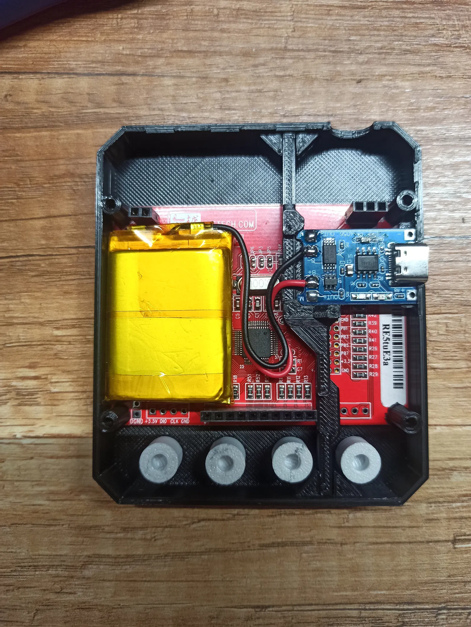 Để lắp ráp bạn sẽ cần 8 con vít M2.5 dài 6mm đầu chìm (hoặc thử chiều dài khác nếu vẫn đủ), 4 đai ốc trụ (standoff) M2.5 dài 11mm và module sạc TP4056 USB C.
