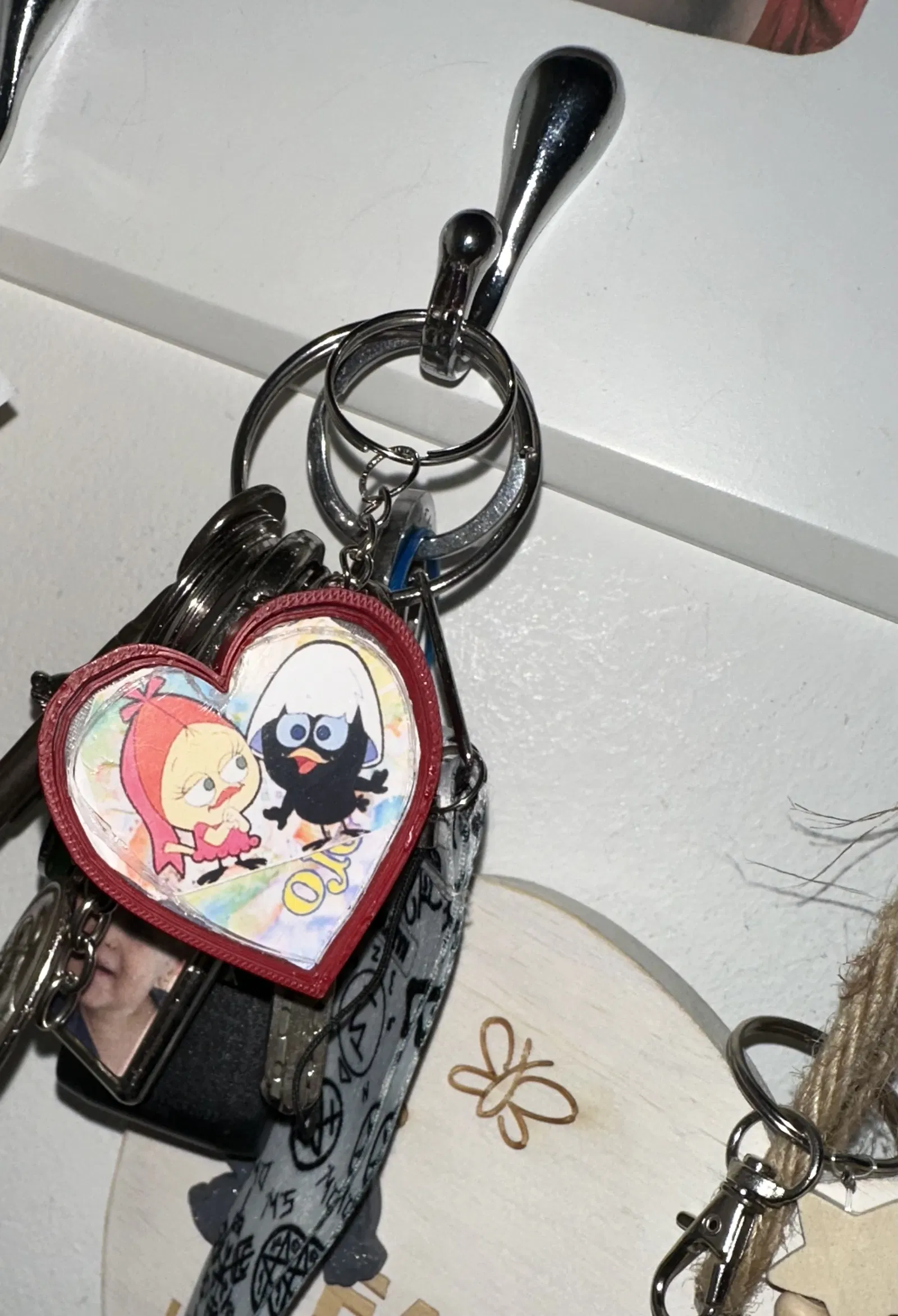 Mình đã làm hai móc khóa hình trái timLED tích hợp.