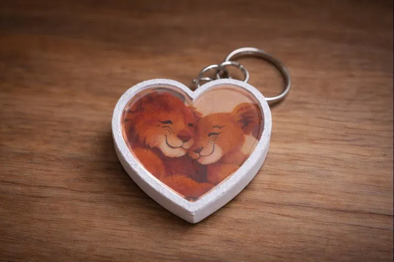 Móc khóa hình trái tim có LED tích hợp: nhấn lên ảnh là đèn sáng, tạo hiệu ứng lung linh. Ảnh in giấy ảnh thường, phía trước có plexiglass cắt theo khuôn để bảo vệ và tăng độ đẹp. Có kèm khuôn cắt ảnh/plexiglass và link LED.