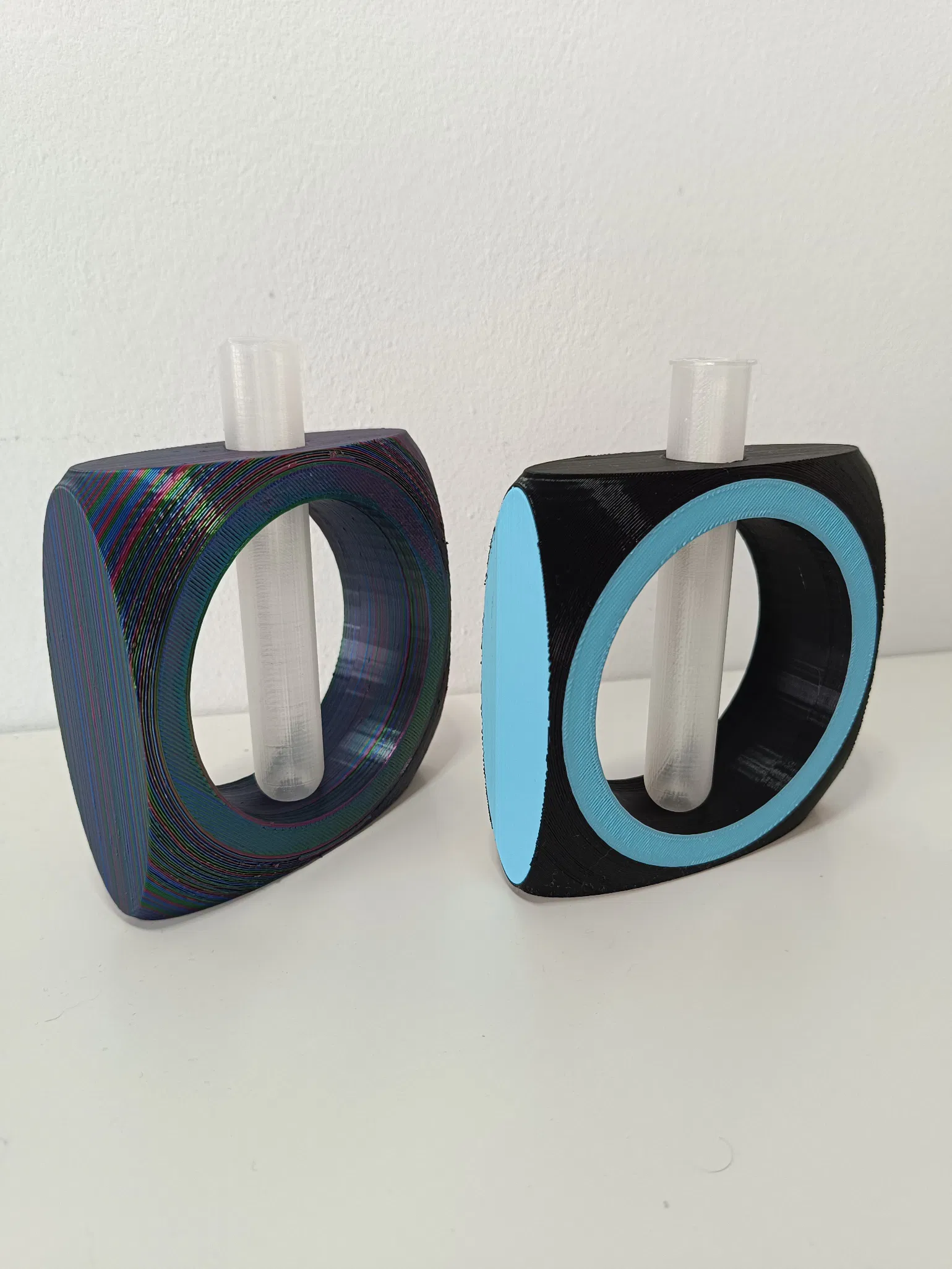 Bình hoa vuông phong cách tối giản dạng khối lập phương, khoét lỗ tròn tạo điểm nhấn và làm nổi bật cành hoa bên trong. Dễ in với PLA/PETG, layer 0.2mm, không cần supports; lắp ống nghiệm là dùng ngay.