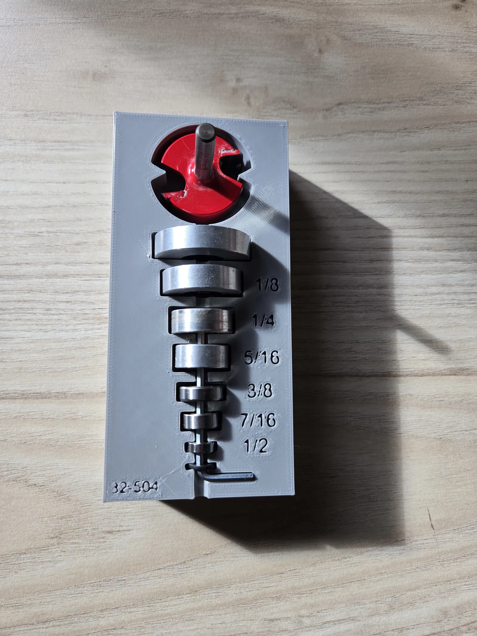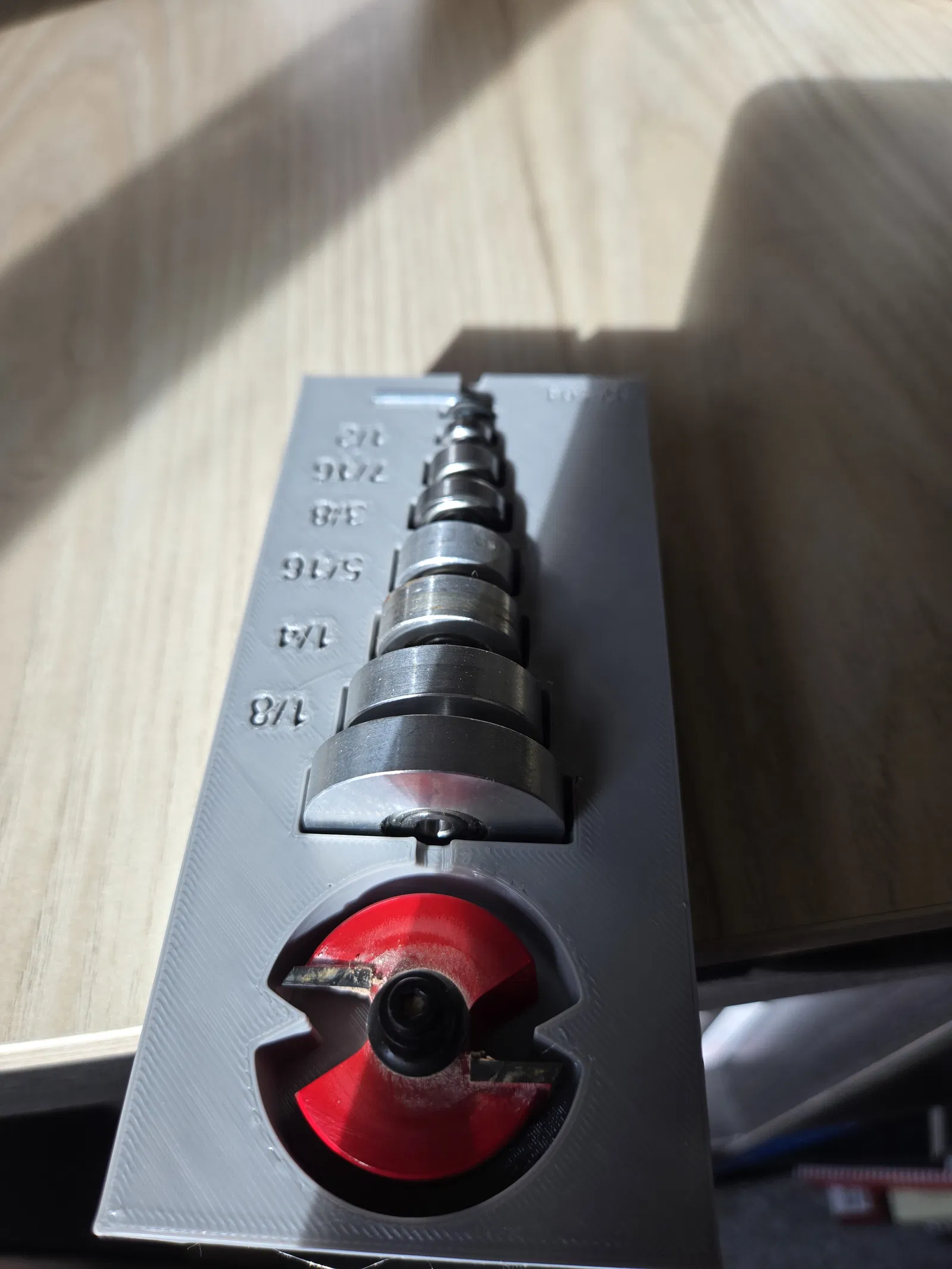 Mình thiết kế cái này để giữ mũi rabbeting bit của mình cùng với đầy đủ các bearing. Ngoài việc chỉ cất bearing, mình còn thêm:
