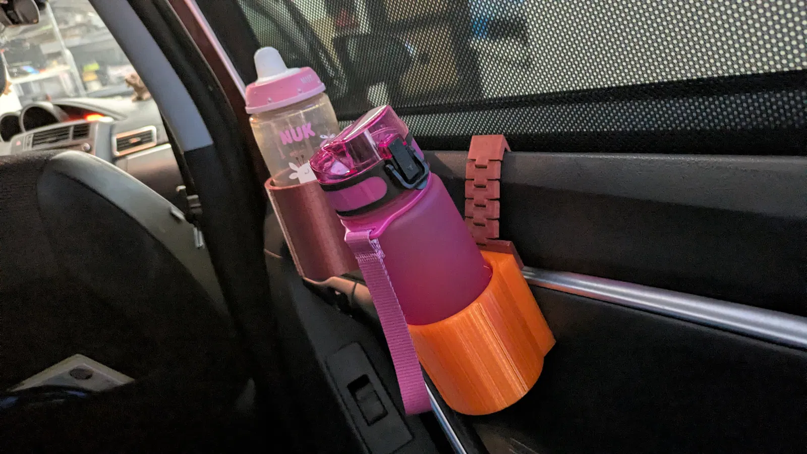 Kẹp giữ bình sữa em bé hoặc lon nước ngọt dạng flexible dùng cho xe hơi (Getränkehalter), có nhiều styles để lựa. Khuyến nghị in PETG với infill 90% và không cần supports.